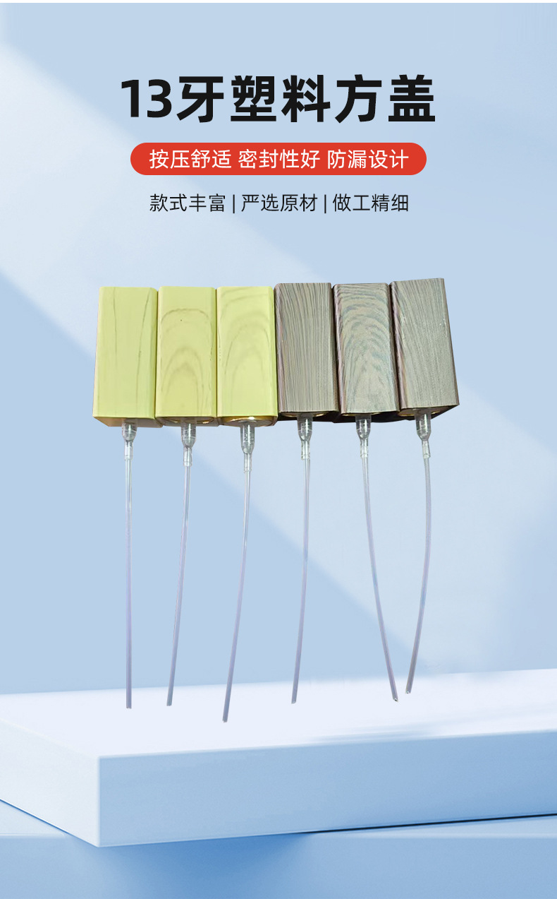 13歯のプラスチックの四角の蓋の防水は木目の香水瓶の化粧品の蓋の高い密封の漏れ防止のppの材質の卸売りを模倣します。