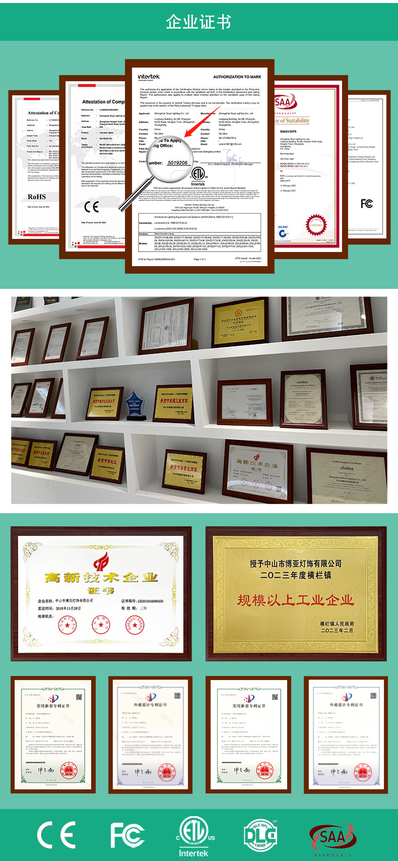 博亚灯饰|源头植物灯工厂,12年线下经验,专供欧美LED植物生长灯市场,对 植物的育苗、生长、开花、结果有非常丰富的经验,提供各种光谱、功率的定制解 决方案。公司已通过ISO9001/ETL/CE/FCC/ROHS/DLC/SAA等各种质量管理体系及产品认证。