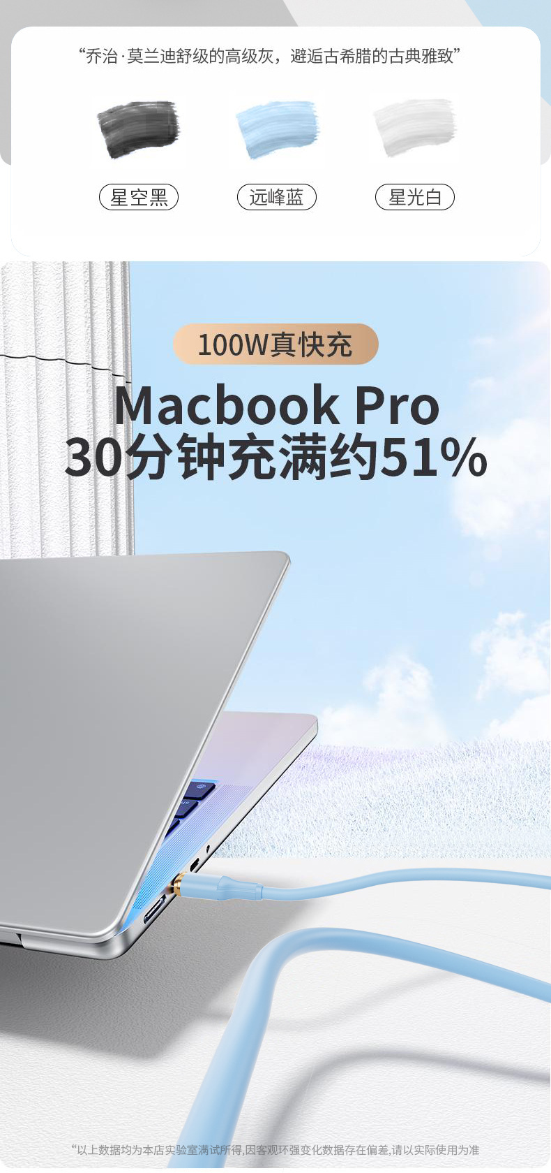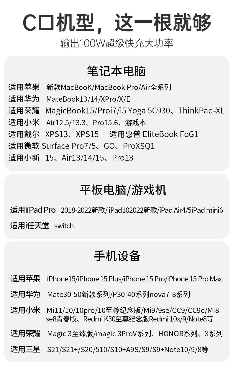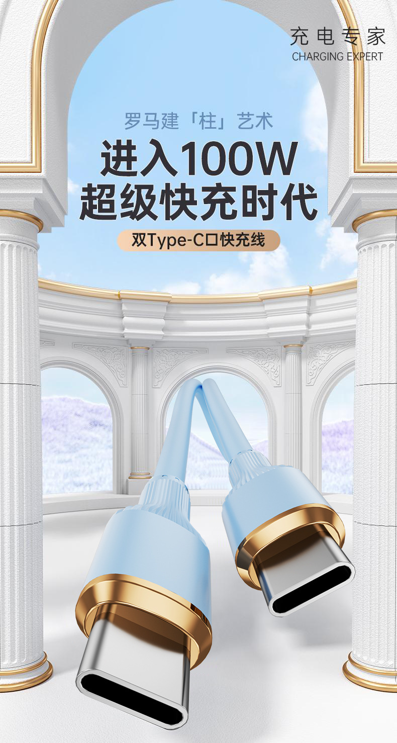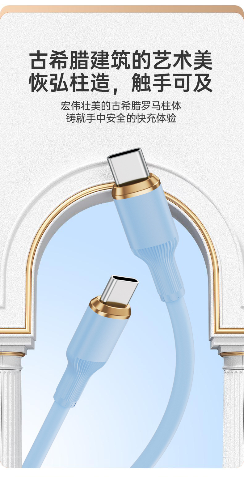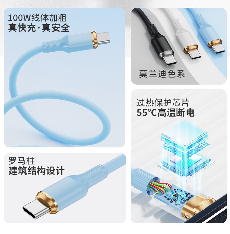 100W速充ローマ柱液体真シリコン単線はアップル華為安卓タブレット携帯電話充電線に適用する