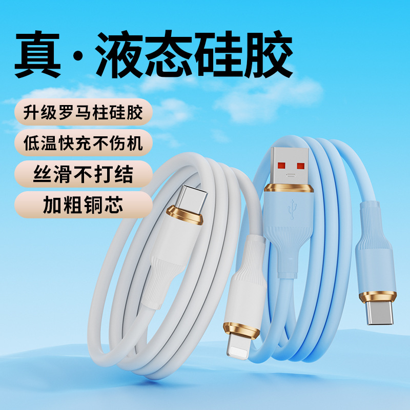 クロスボーダータイプC充電ケーブル、超高速充電、Huawei、Apple、Android携帯電話に適した、本物の液体シリコンデータケーブル