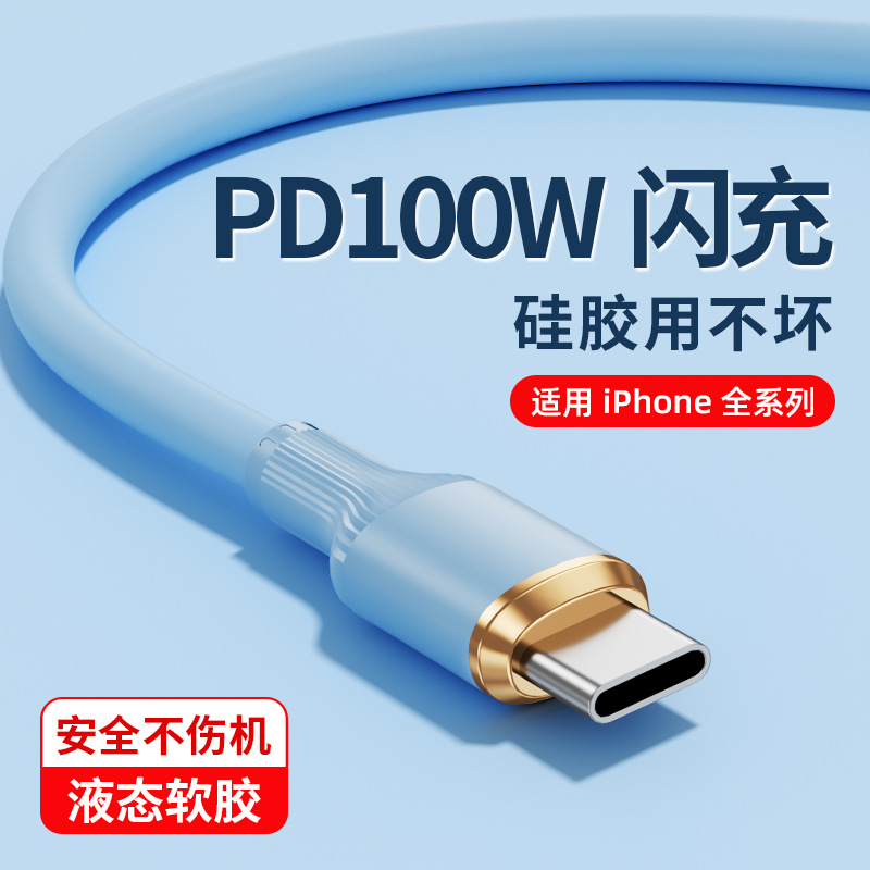 液体ソフトゴム100W急速充電データラインはリンゴ華為栄光OPPOローマ柱単線卸売りに適している