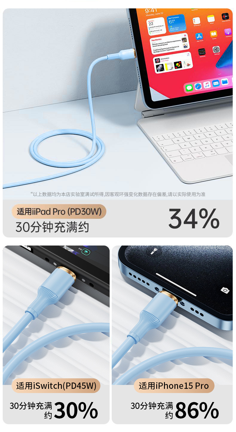 硅胶超级快充Typec手机数据线适用苹果华为荣耀vivoppo安卓充电线