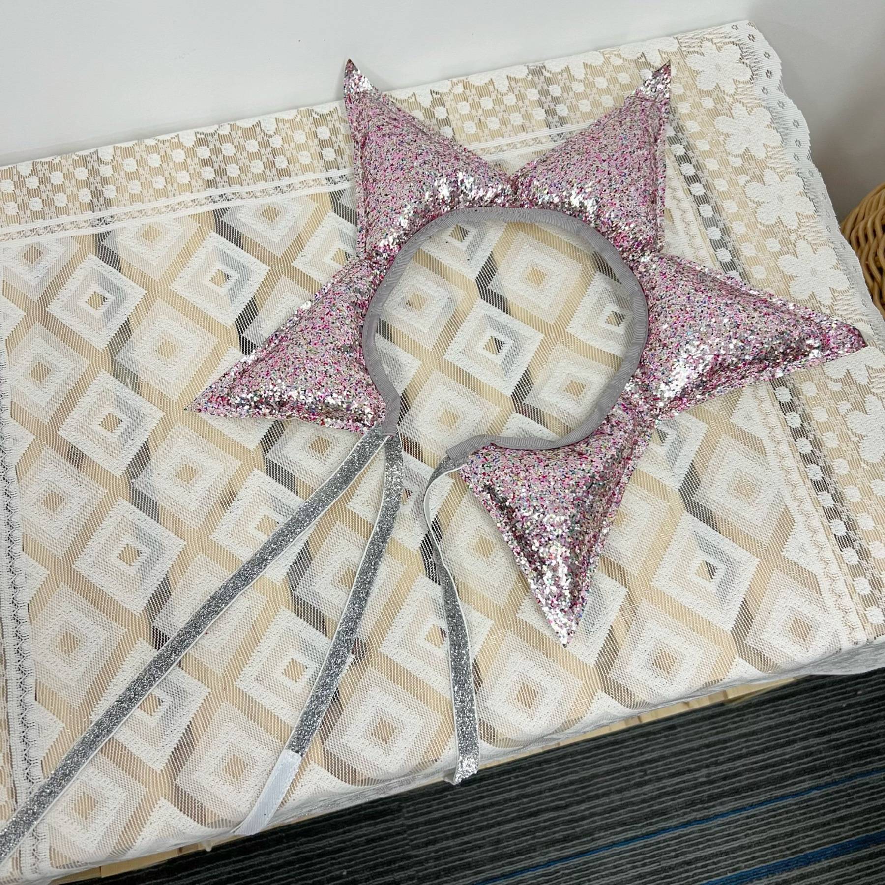 材质:亮片+无纺布+pp棉(闪粉会掉,正常现象,介意勿拍) 产品尺寸:36*36*3cm包装尺寸:27*27*3cm 重量:73g