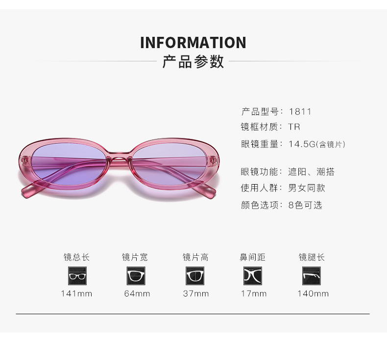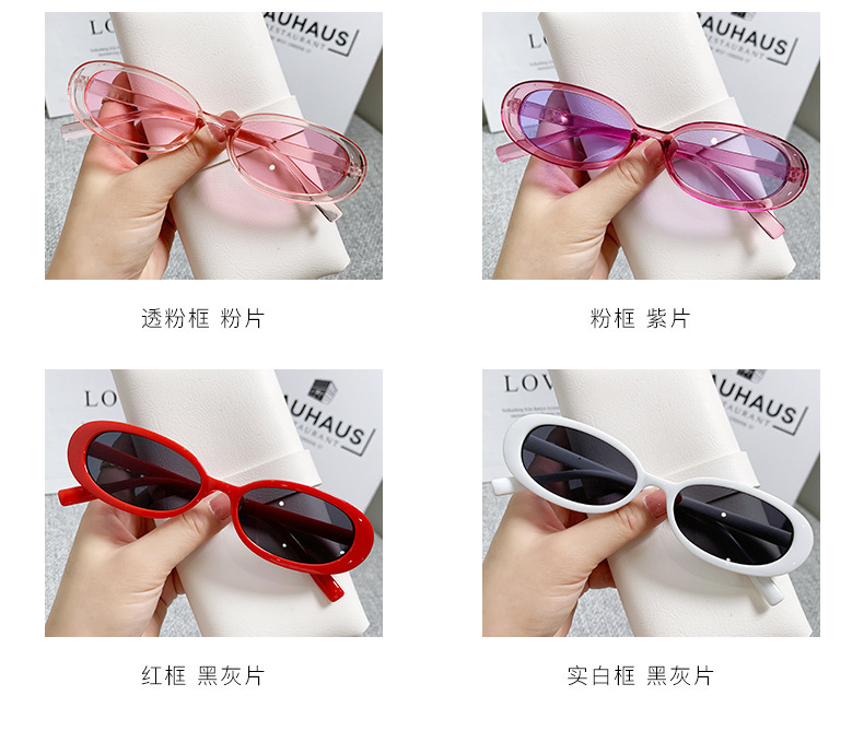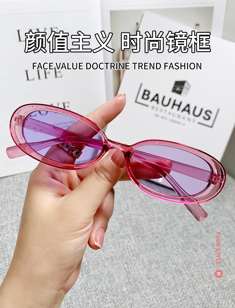 新款时尚椭圆框墨镜百搭防紫外线太阳镜男女通用潮牌眼镜