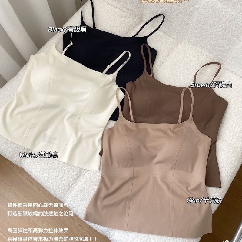 701新型ヌーディー感無痕一体型胸パッド付き露出防止下着レディースキャミソール痩身美背ブラジャー