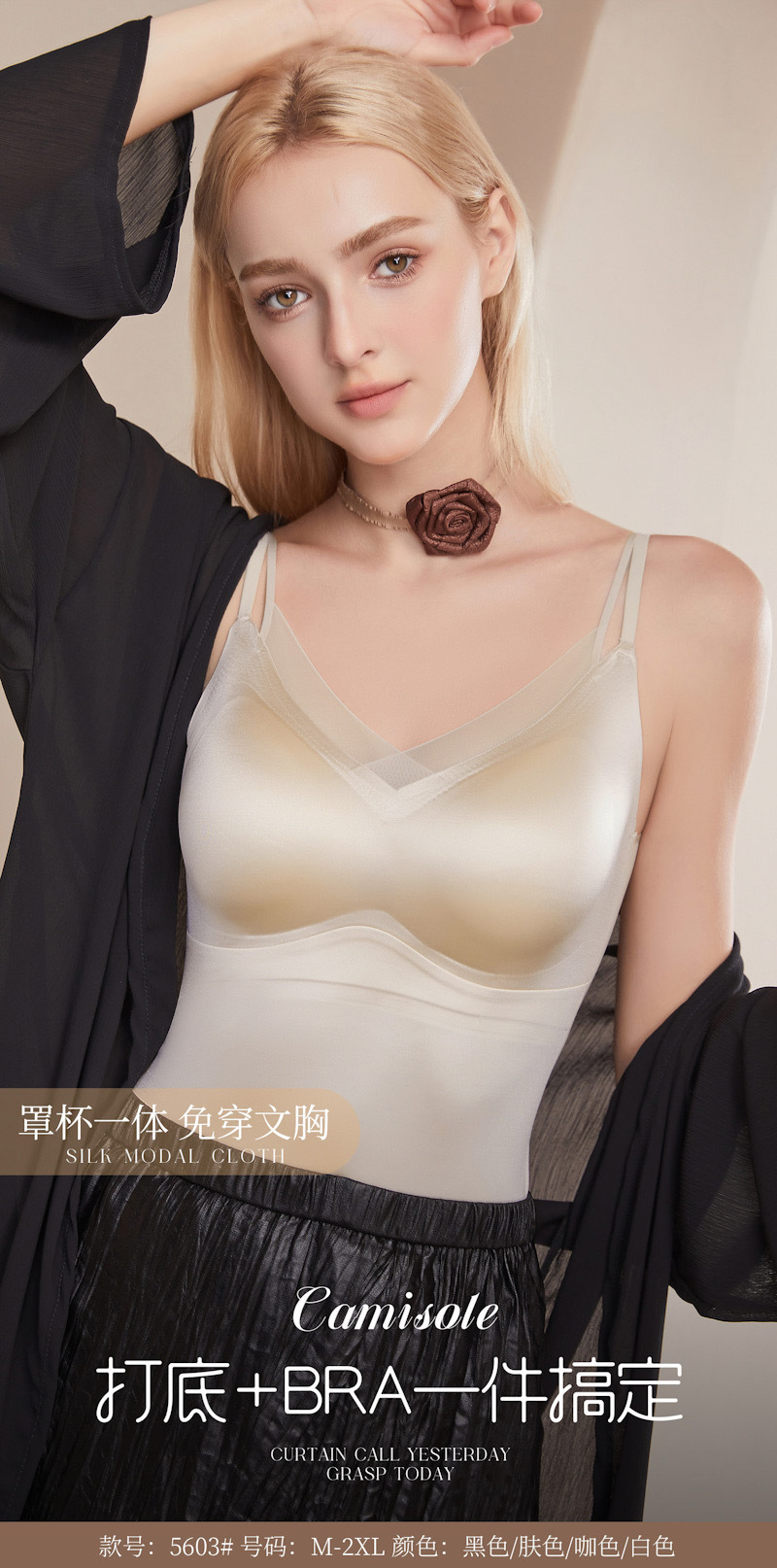 6255起爆した绢糸超薄ストラップベストのブラジャー式固定カップは裸感のシンプルなベストを着ている