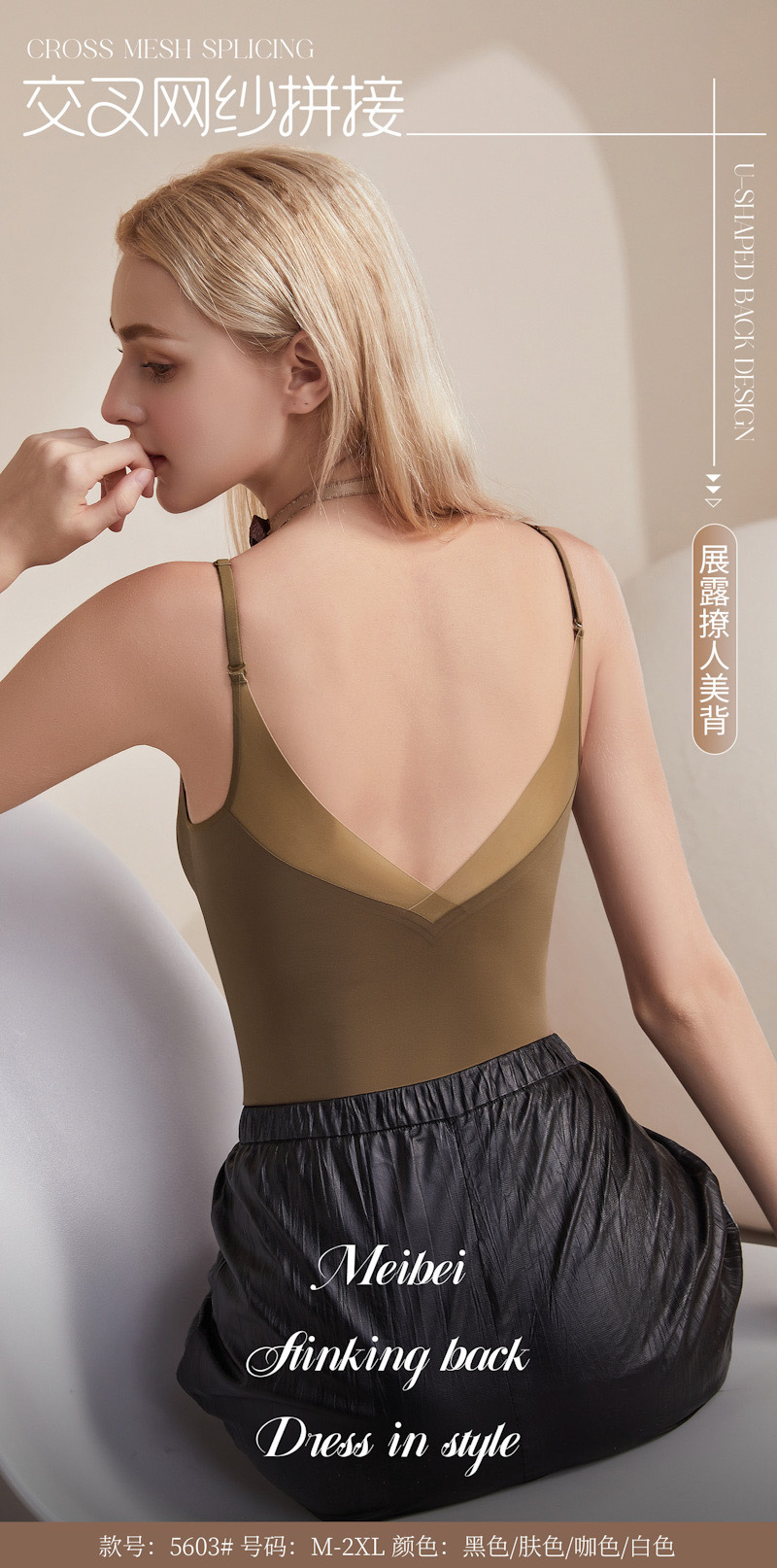 2025年の新型女性のセクシーな透かし彫りの肩のベルトの網の糸は大きいVの背中の一体の無傷のサテンのガーターの美の背中をつなぎ合わせます。