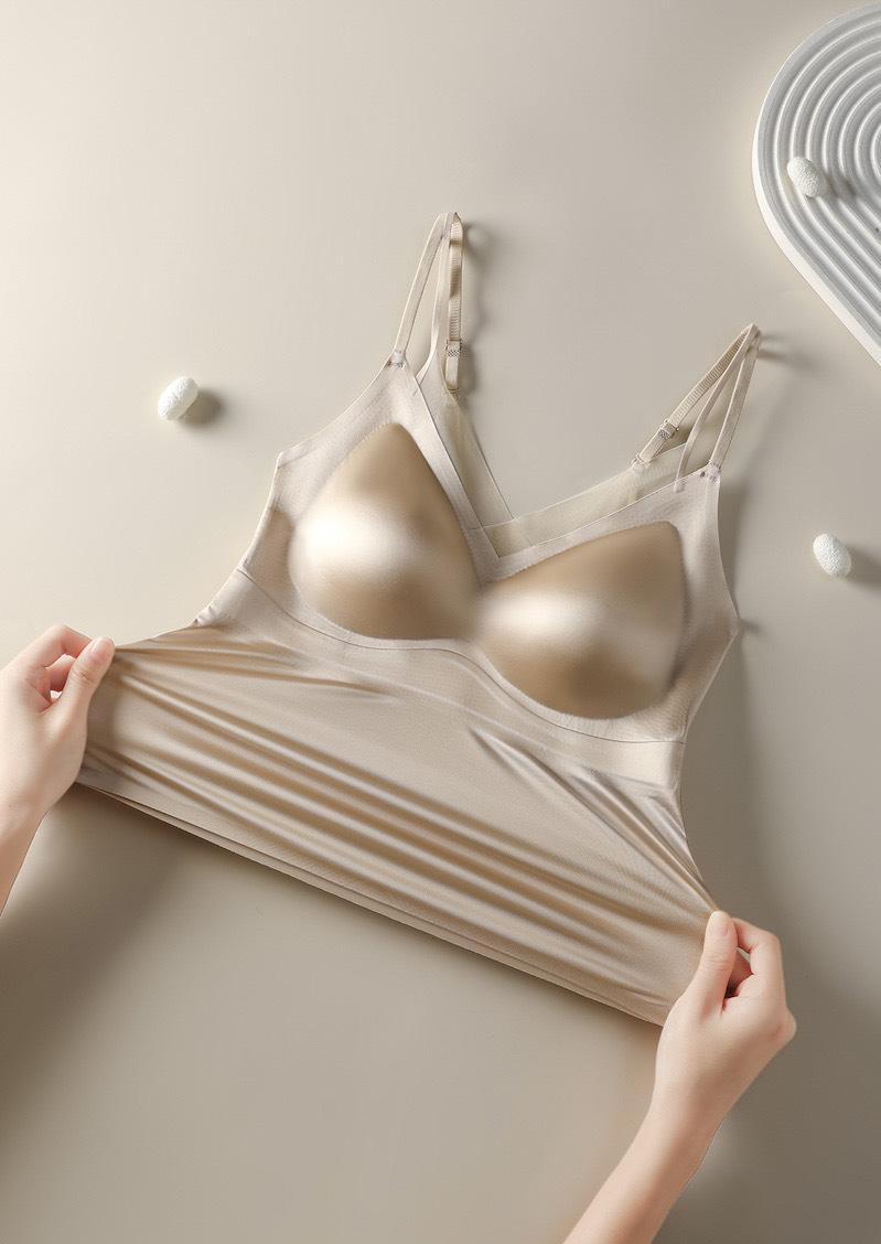 生放送で起爆したサテンのシンプルな無傷裸感ストラップ固定一体カップ二合一防走光ベストが底をつく
