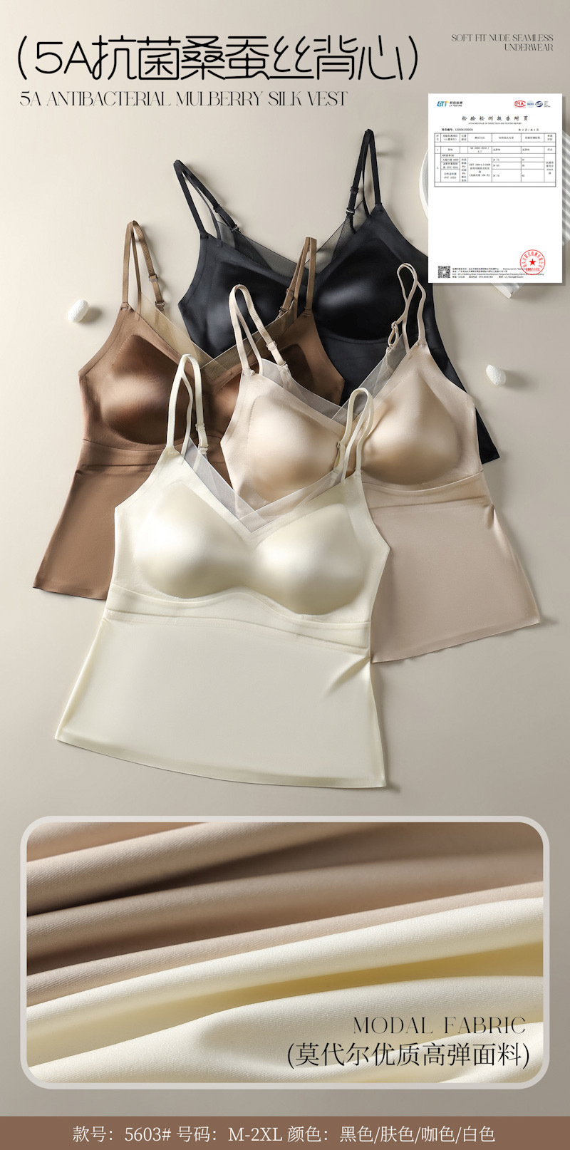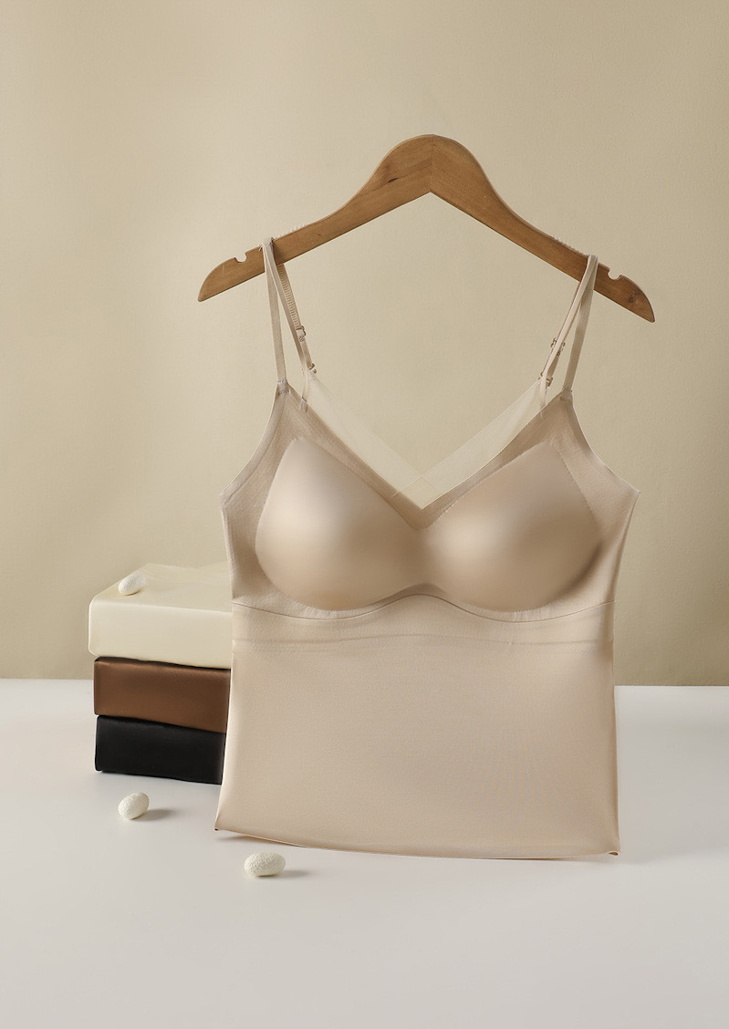 ツーインワンノーブラベスト夏サスペンダーレディースアウターホットガールスーツインナーマルベリーシルク抗菌大きいサイズトップ