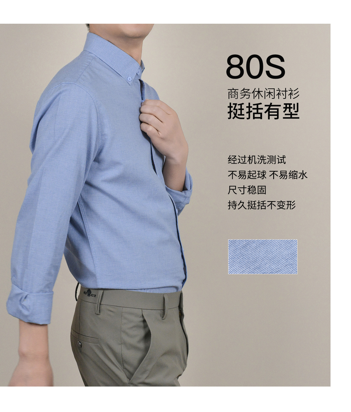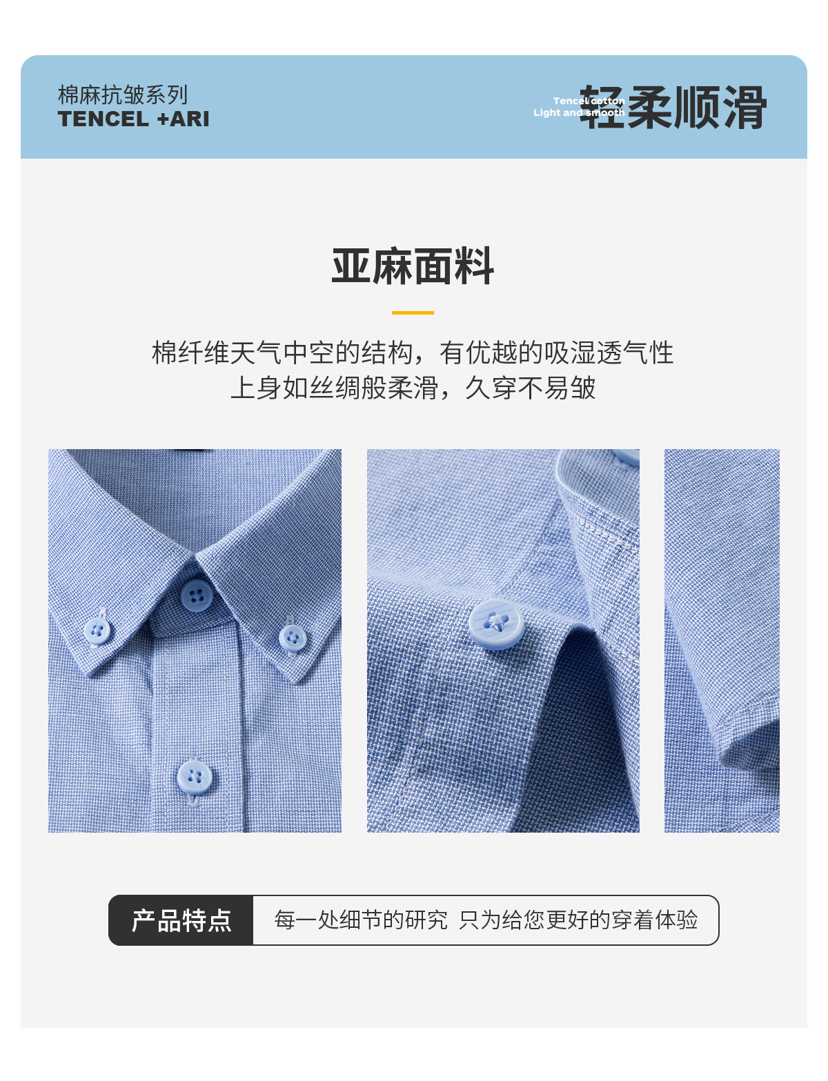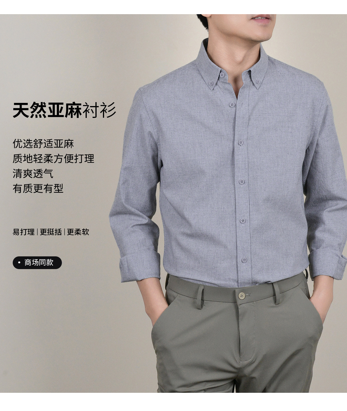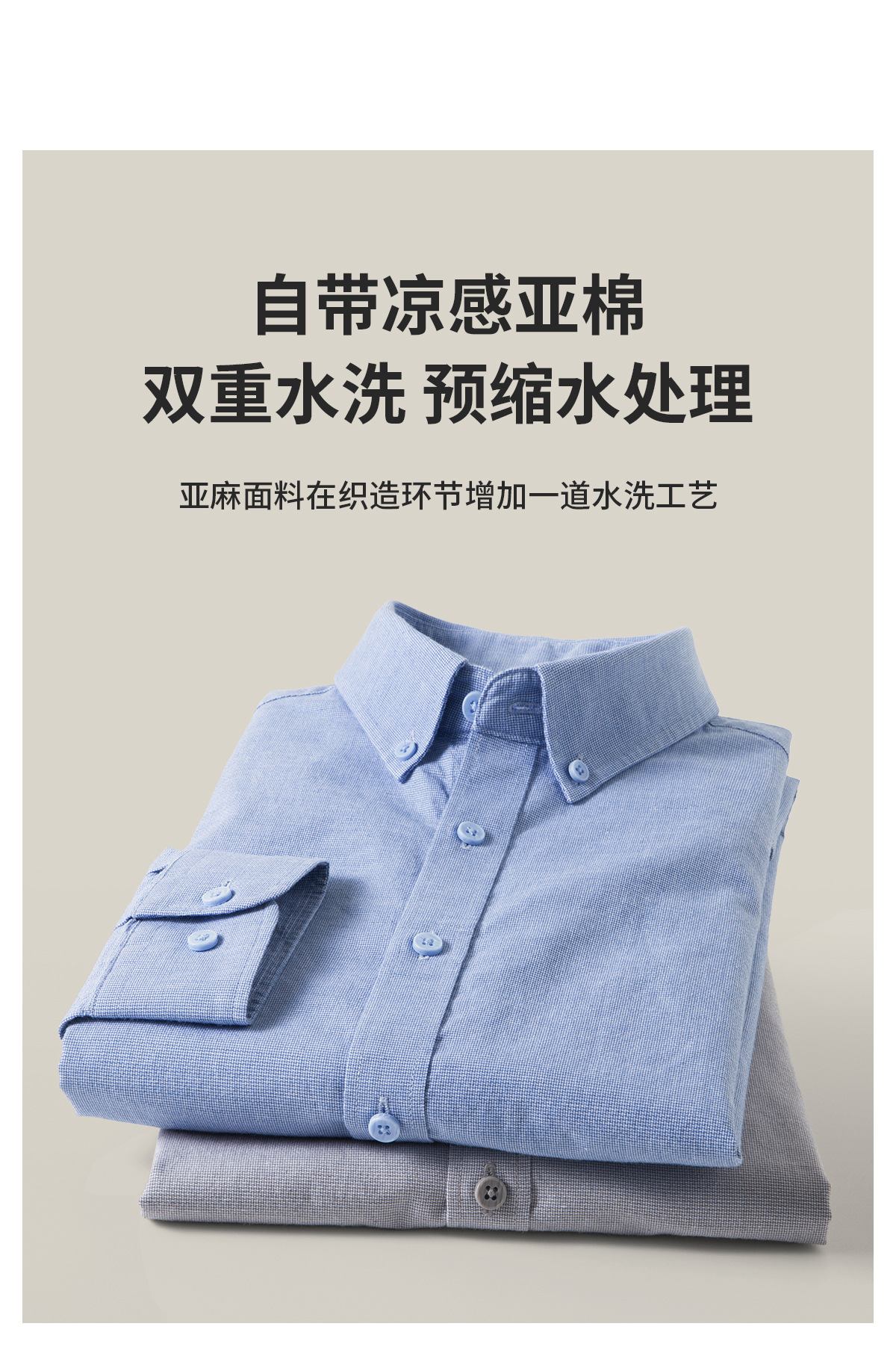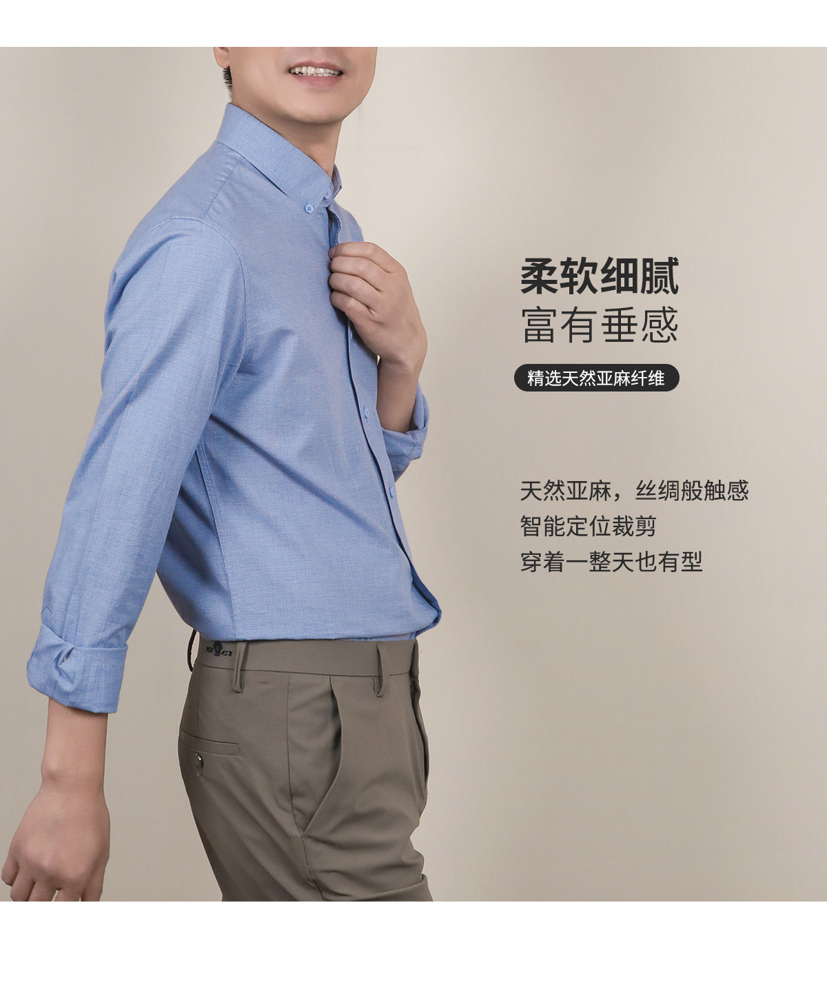【亚麻+莱赛尔】纯色男式衬衫新款长袖人字纹休闲商务男士衬衣