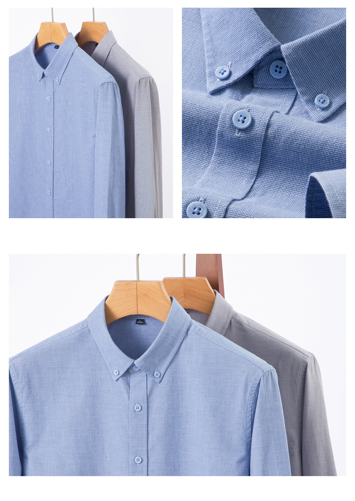 春と秋の水洗いオックスフォード紡績長袖シャツ男性の純色のしわに強いシャツのカジュアルビジネス作業服