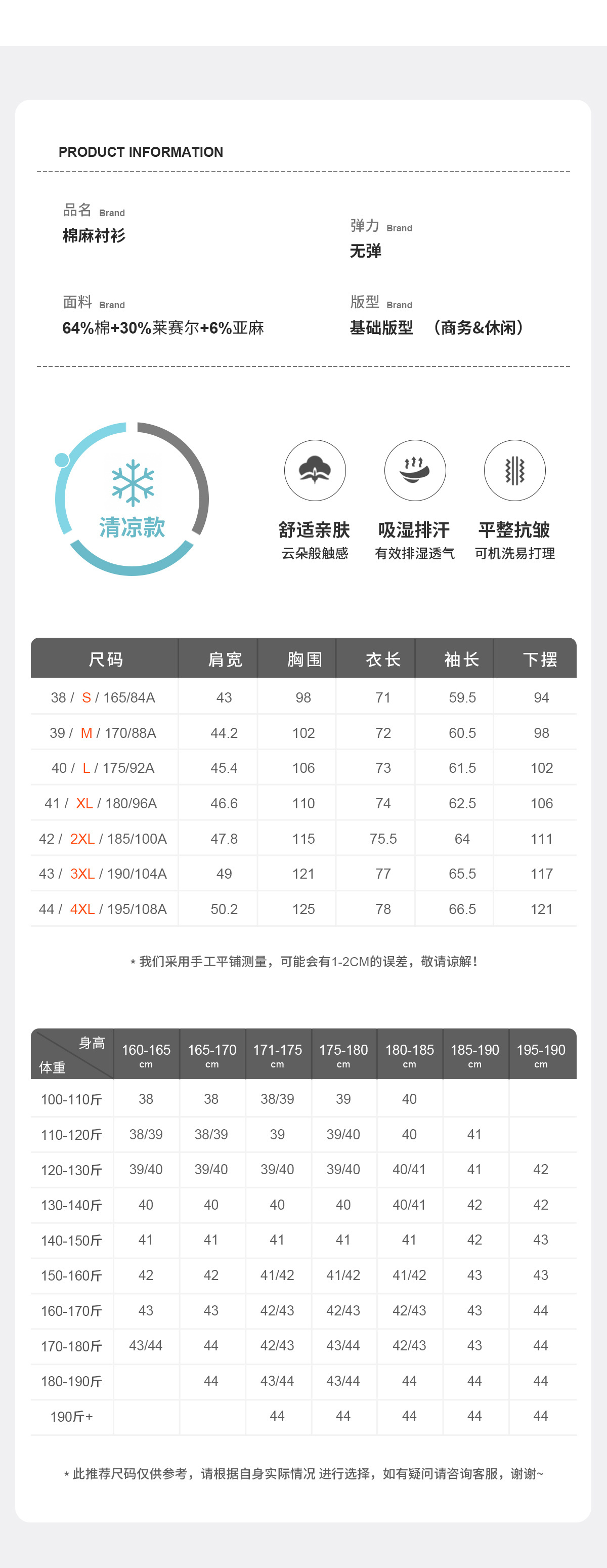 サイズ 38/S,39/M,40/L,41/XL,42/2XL,43/3XL,44/4XL