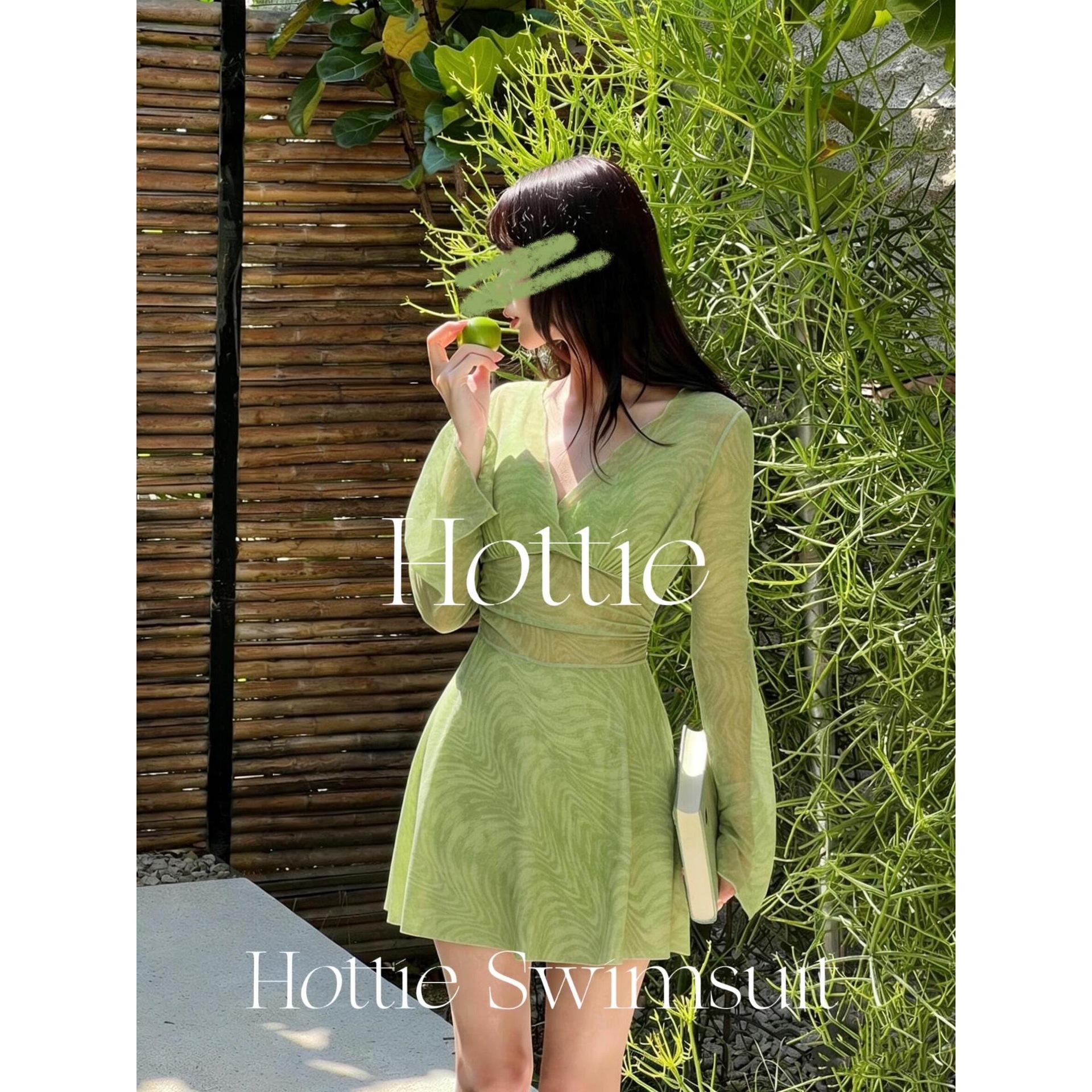 2025新型高級感連体温泉スカート式水着女性が痩せていて、保守的にお腹を隠しています。