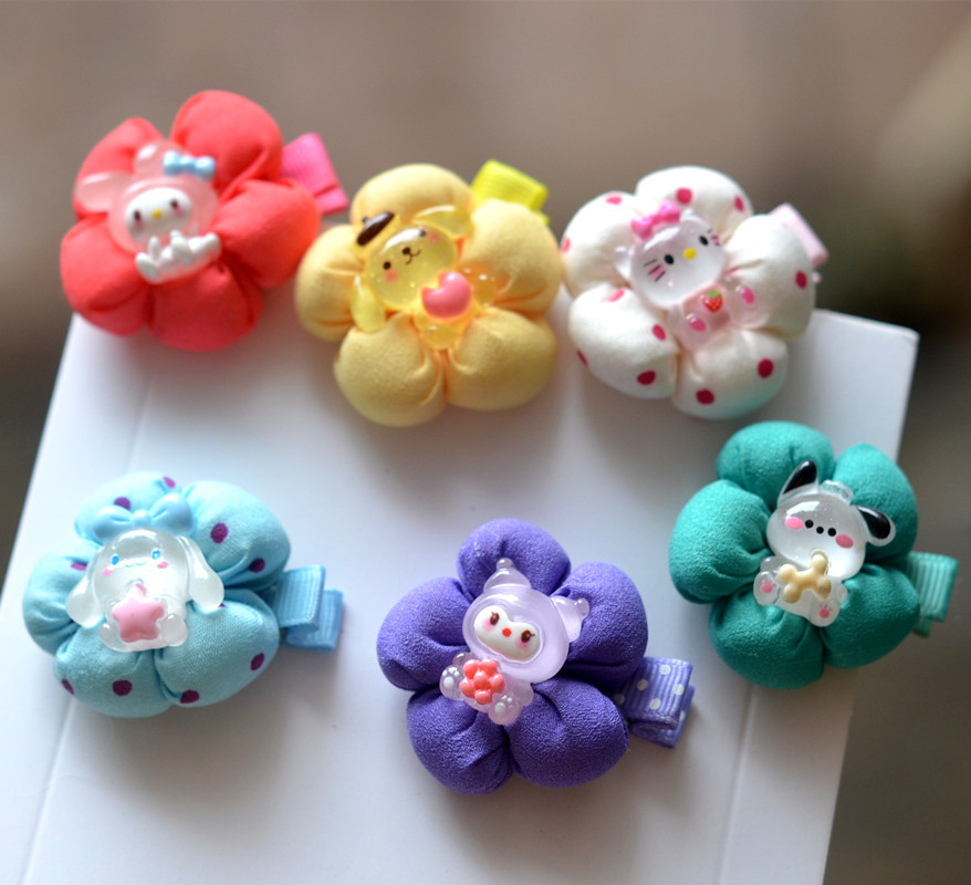 1#クロミのヘアピン,2#プリン犬のヘアピン,3#シナモン犬のヘアピン,4#KT猫のヘアピン,5#メロディヘアピン,6##パチャ犬のヘアピン,7#ランダムなヘアピン