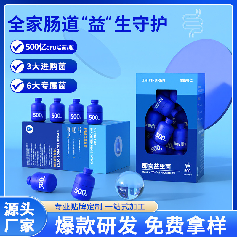 すぐに食べられる小さな青いボトルのプロバイオティクス凍結乾燥粉末卸売イヌリンプレバイオティクス活性プロバイオティクス 3 万億固体ドリンク