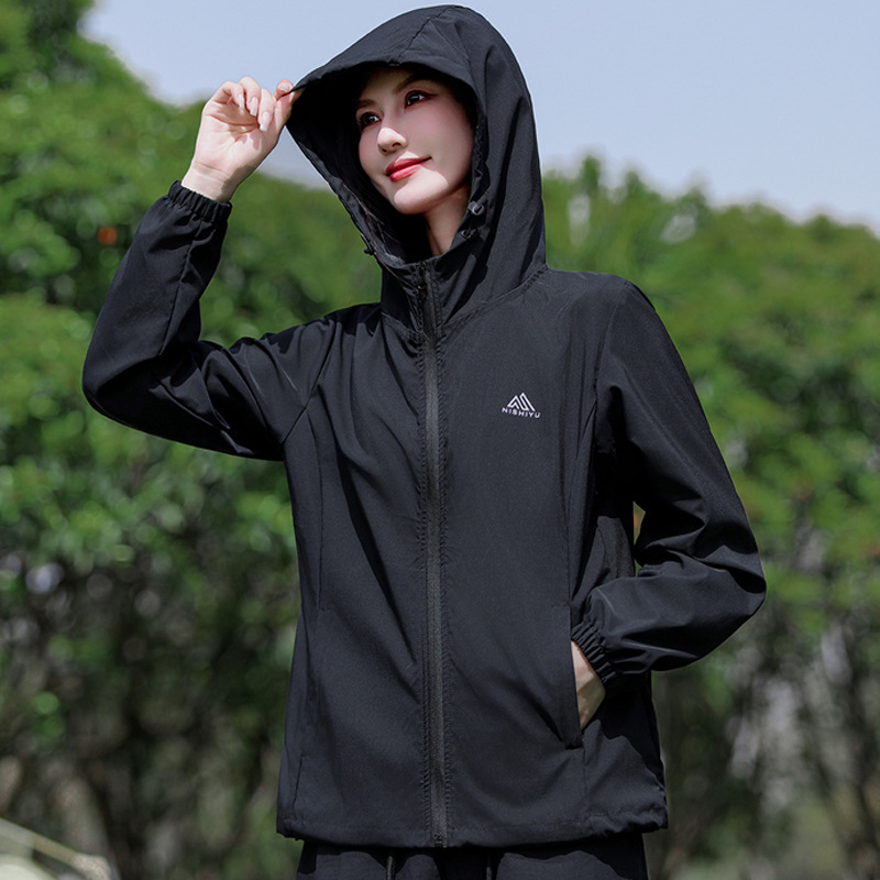 2025新款连帽运动外套女士休闲宽松纯色拉链冲锋衣春夏百搭防晒衣