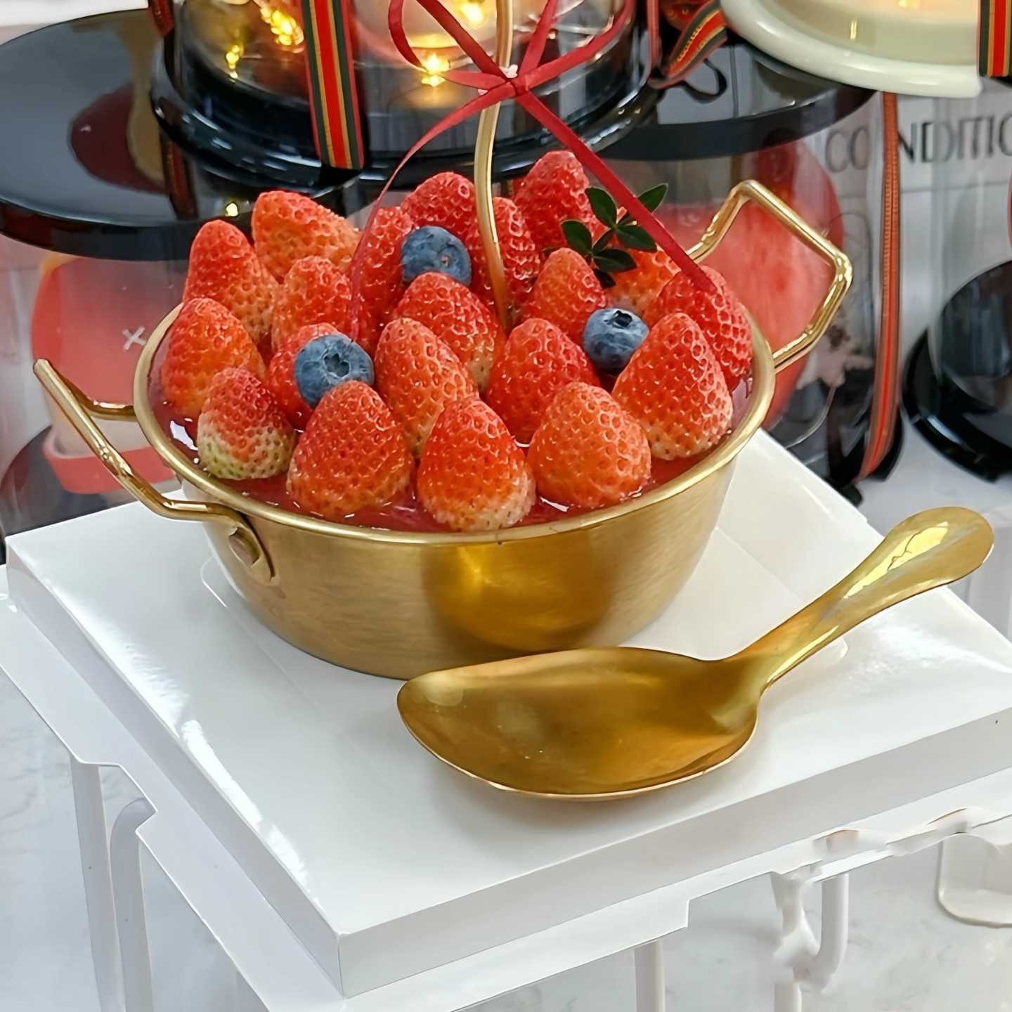 网红圣诞节新年不锈钢金色双耳碗草莓蛋糕不锈钢锅草莓跨年蛋糕碗