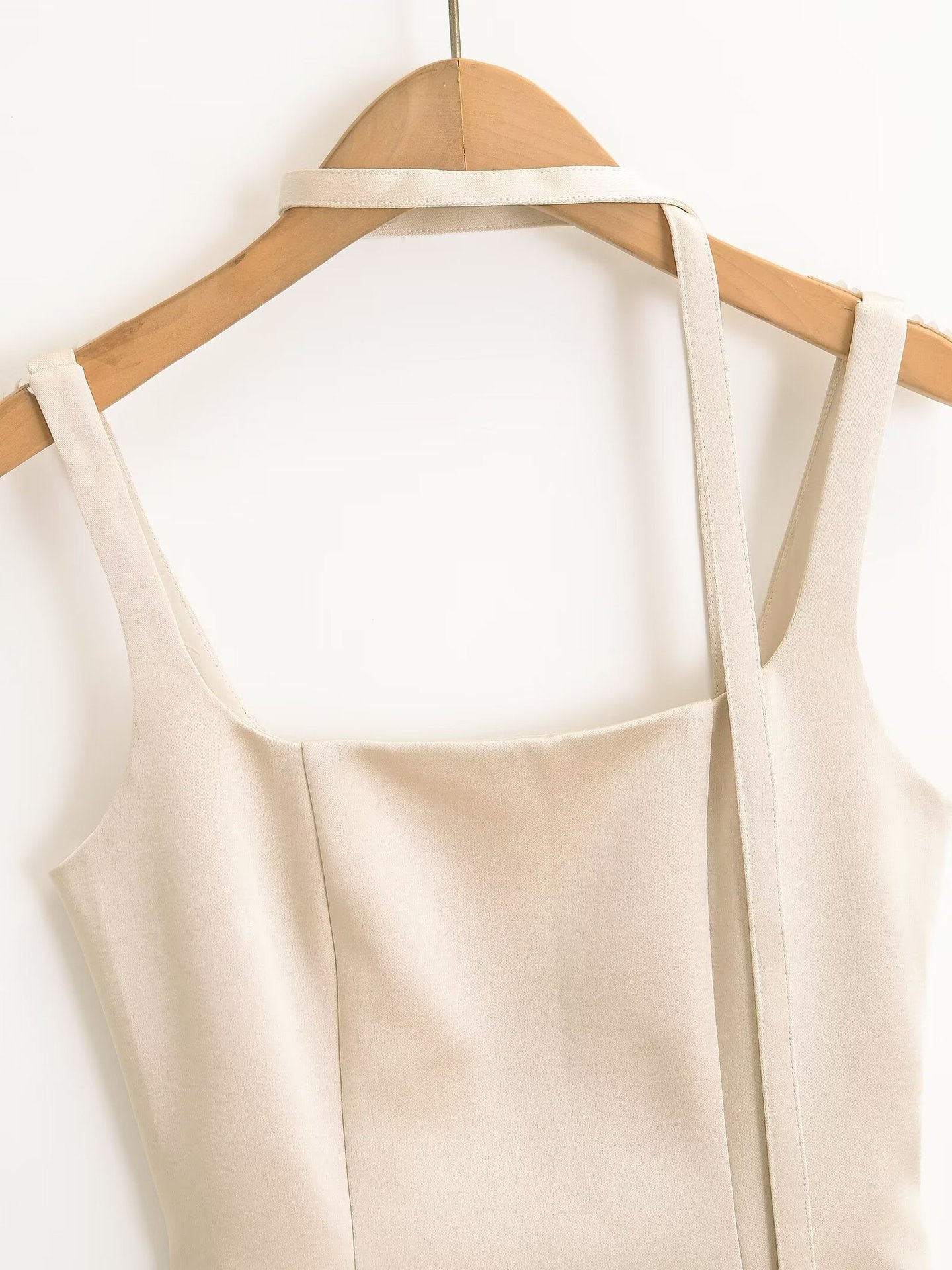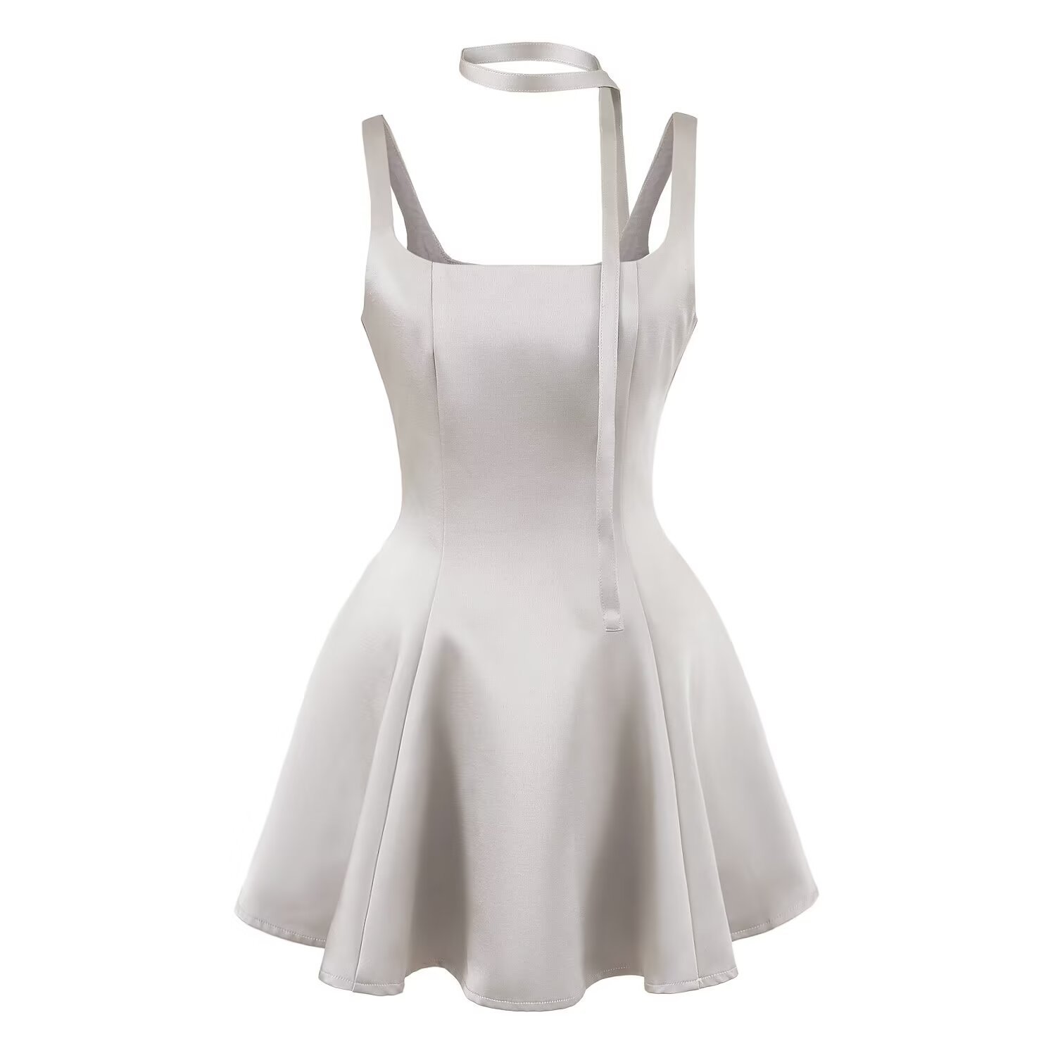 法式方领吊带连衣裙女春收腰显瘦气质小个子高腰白色长裙