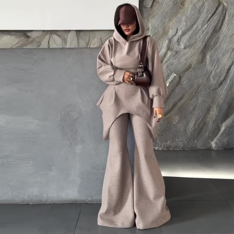 2025秋季新款欧美亚马逊跨境外贸女装连帽修身简约休闲长裤两件套