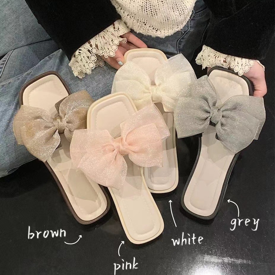 フェアリースタイルメッシュリボンフラットスリッパ女性の夏のファッションノンスリップビーチサンダルネットレッドホットスタイル