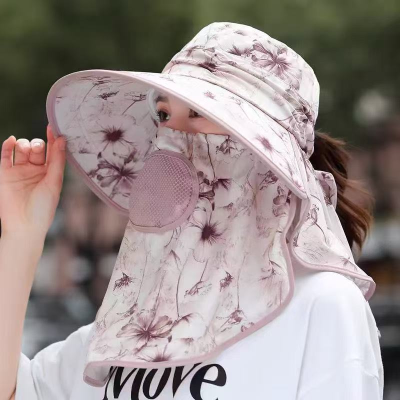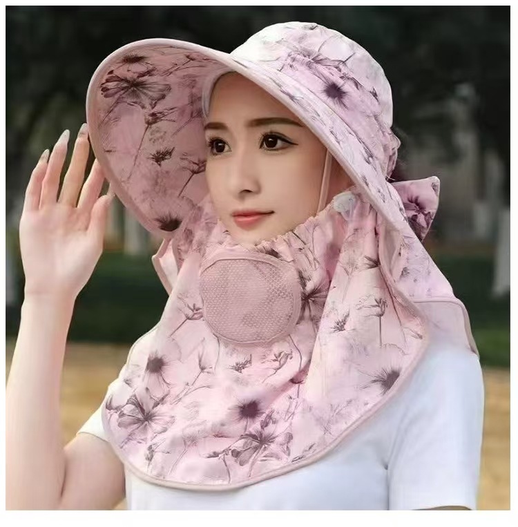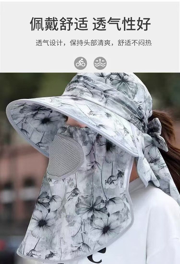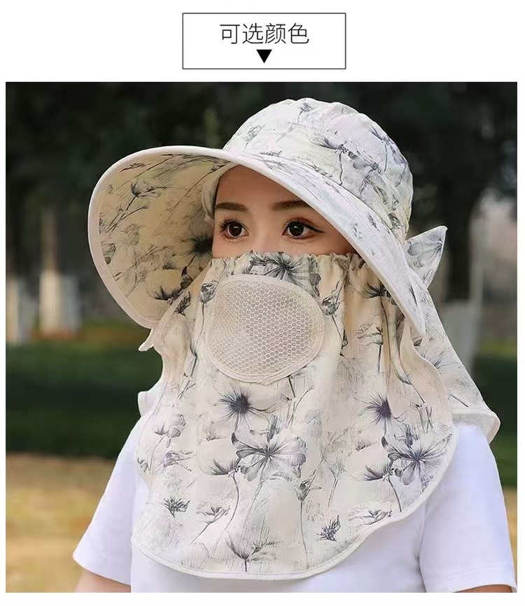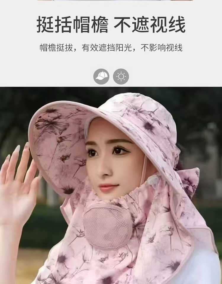 全方位日焼け止め帽子通気性マスク首保護一体日よけ帽子紫外線防止屋外日よけ帽子女性
