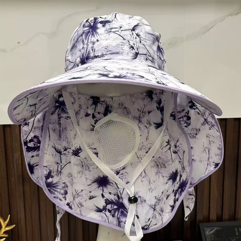 女性用の薄い大きなつばの日焼け止め帽子、屋外農作業用のお茶摘み帽子、顔を覆うショール、首を保護するシフォン帽子