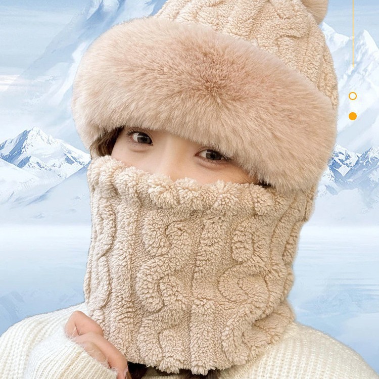 帽子围脖一体冬季加绒加厚骑车防风防寒电动车保暖套头帽