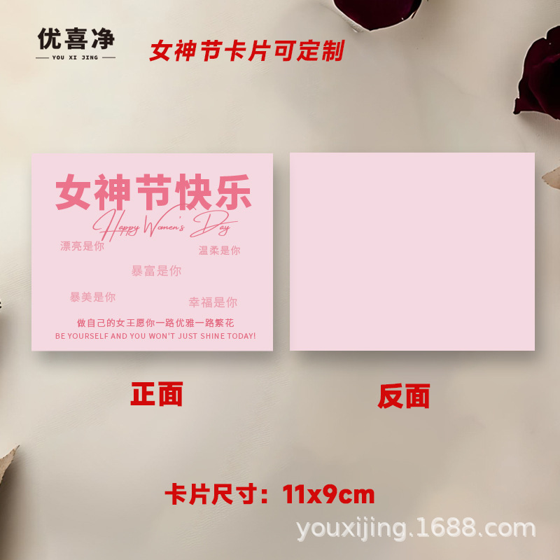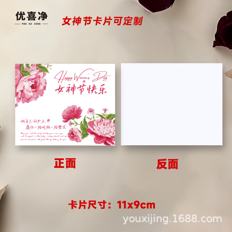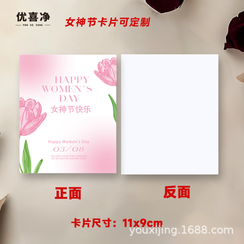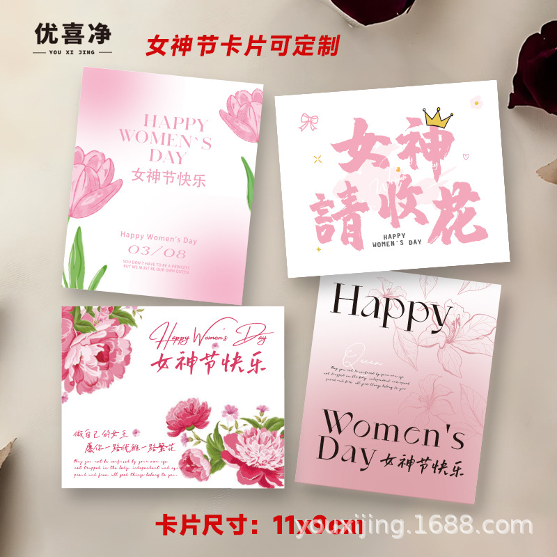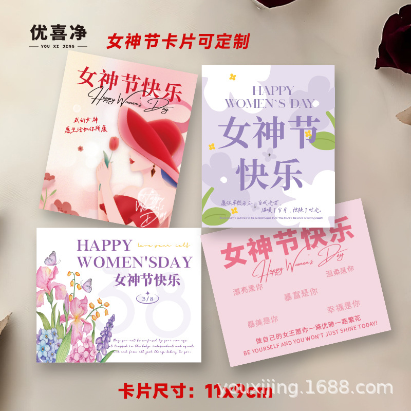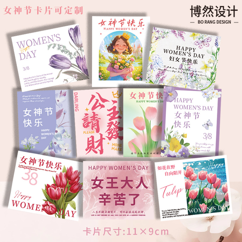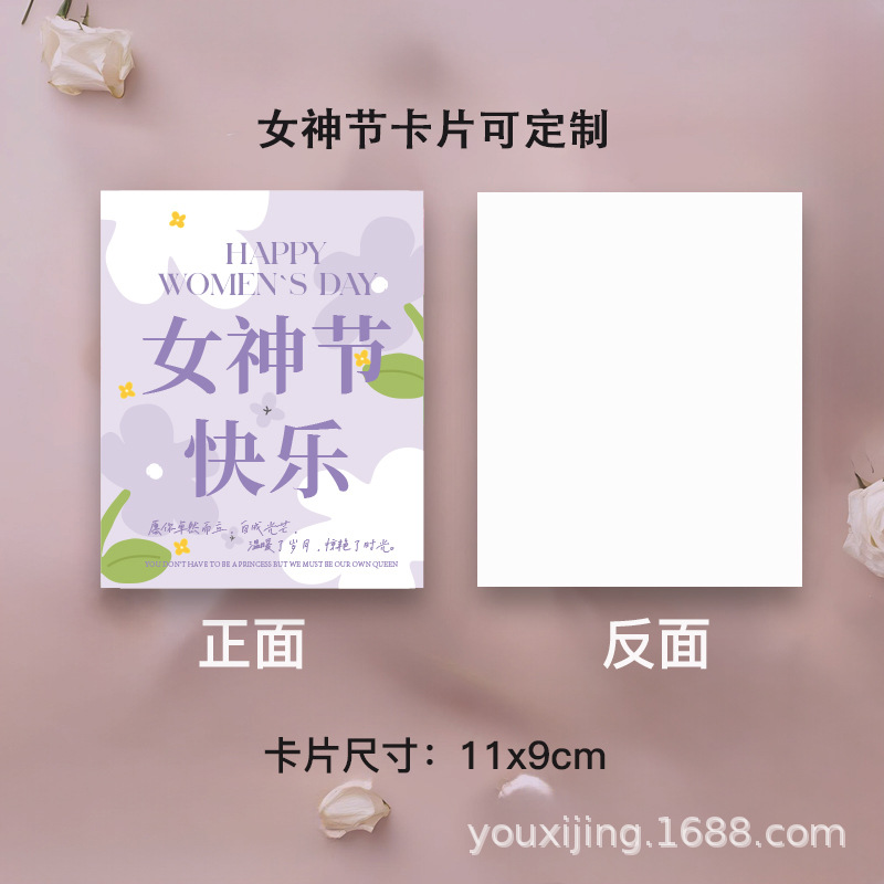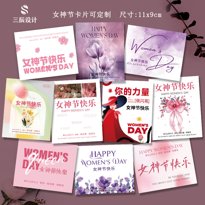 新款三八女神节卡片简约38妇女节贺卡花店企业送员工祝福吊牌