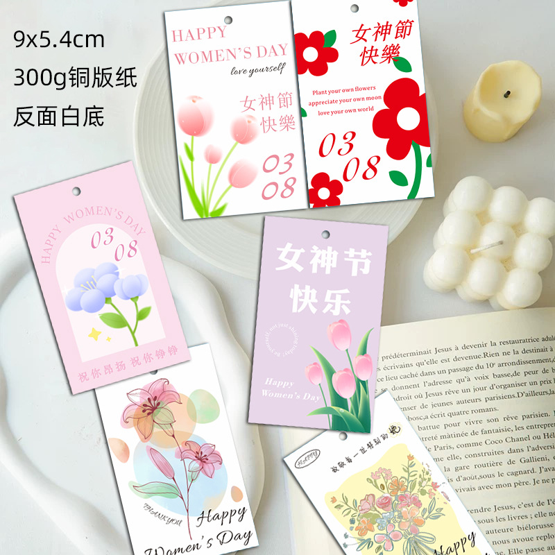 女神节吊牌三八妇女节妈妈节日快乐小吊牌花店鲜花祝福卡片小贺卡