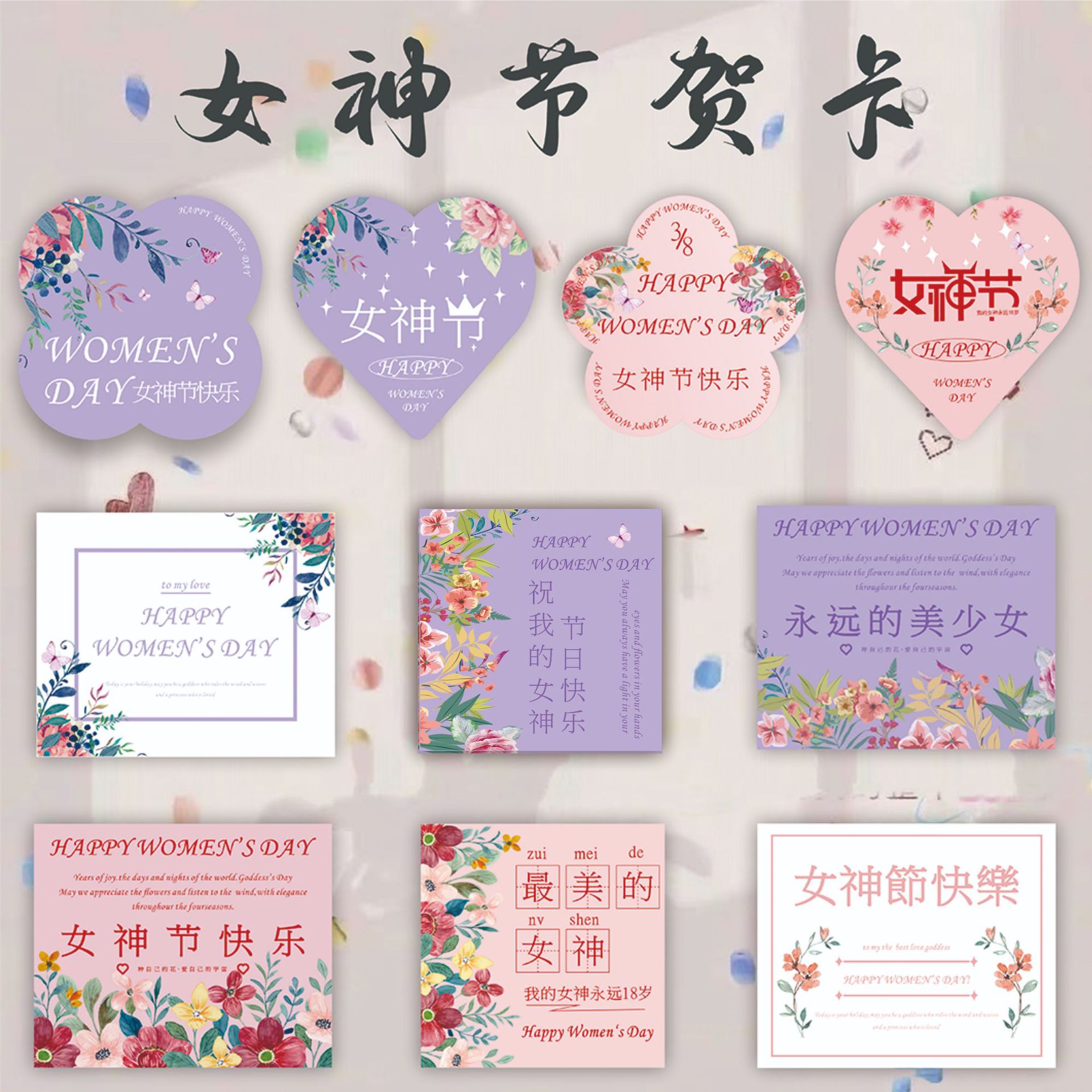38三八妇女节贺卡女神节吊牌留言礼物蛋糕鲜花插卡花束吊卡挂卡片
