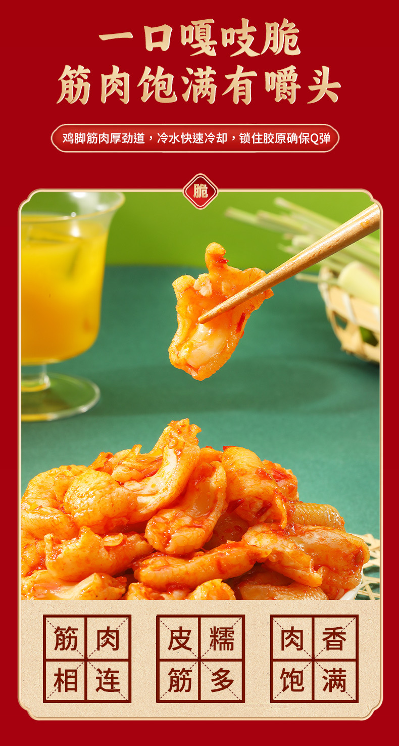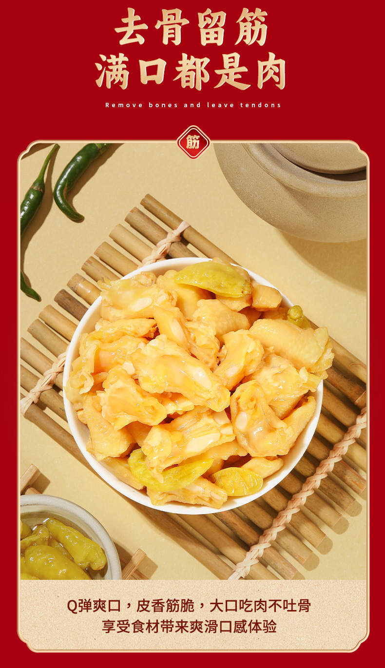泡椒鸡脚筋去骨鸡爪筋即食休闲零食下午茶解馋小吃凤爪鸡脚筋批发