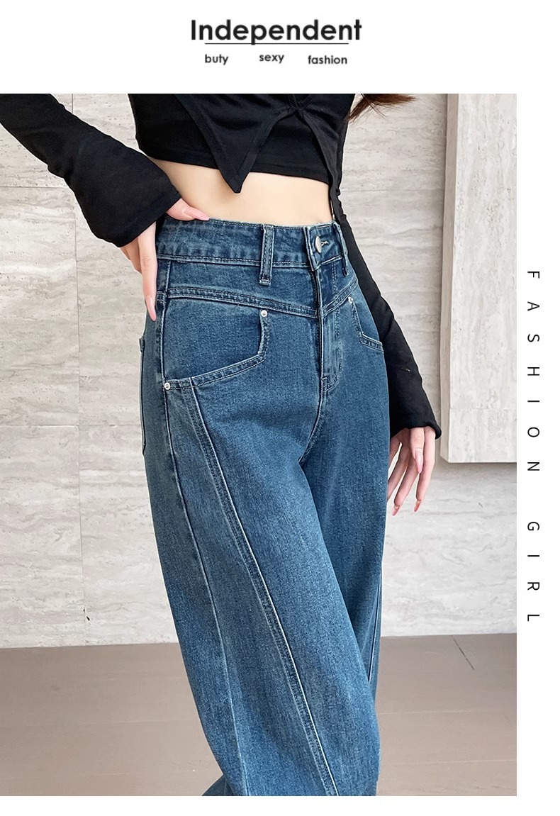 时髦设计感直筒牛仔裤女春秋季2025新款宽松网红辣妹潮流阔腿裤子
