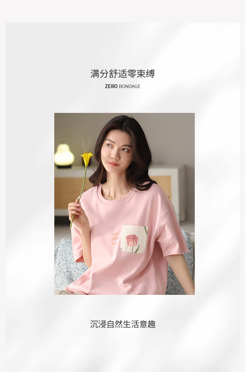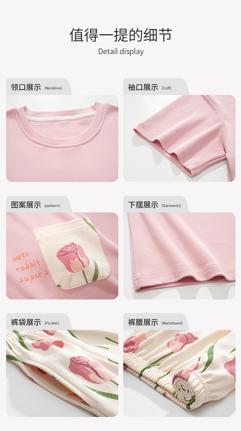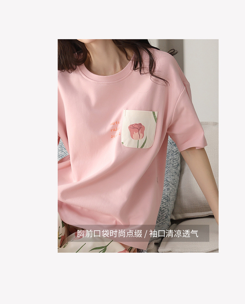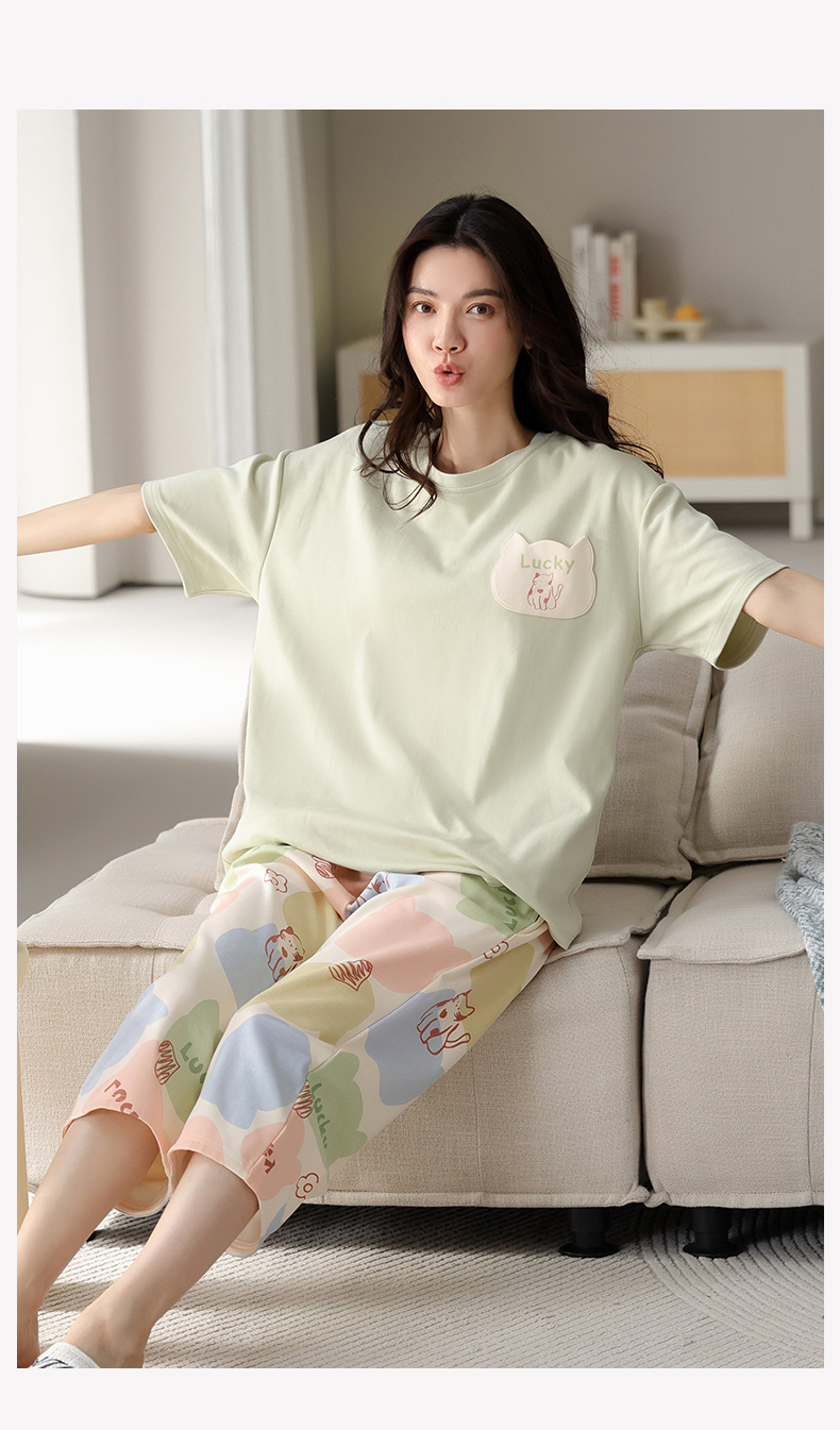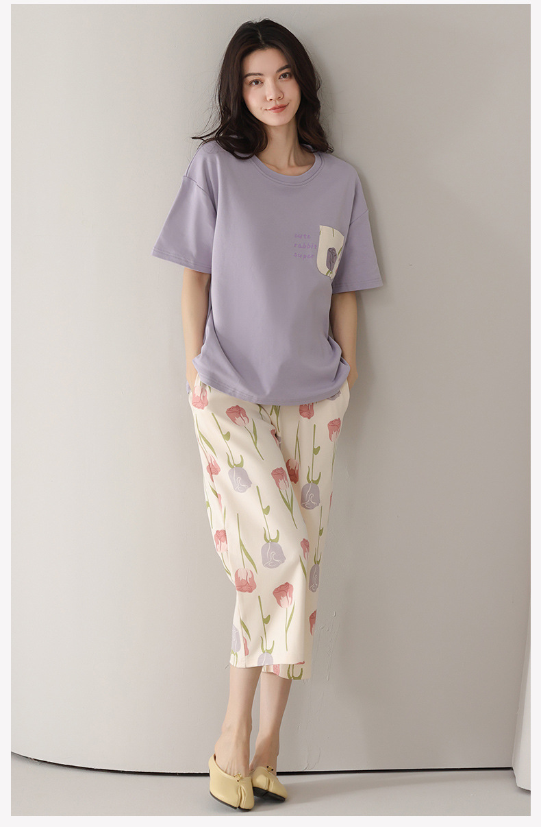 純綿パジャマ女性の夏の薄い半袖の7分のズボンの花のかわいいスーツは綿の女性の家の服を着ることができます。