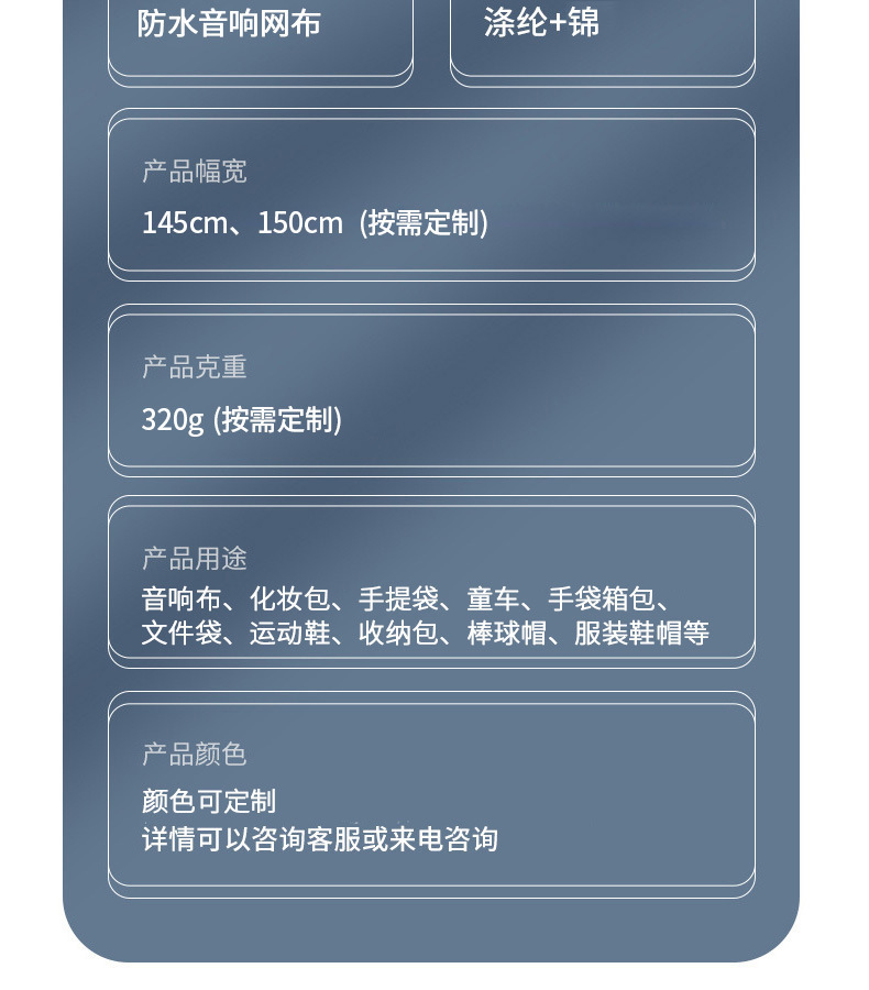 加厚透声防尘音箱布面料 防水涂层网眼布 箱包鞋材蓝牙音响布批发