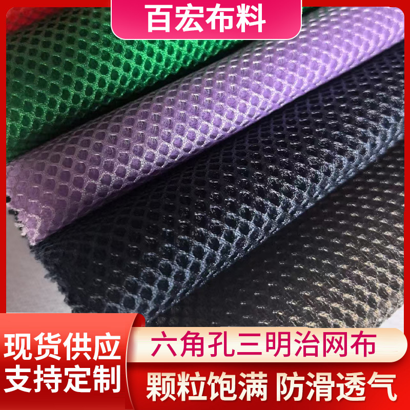 現物卸売りサンドイッチ六角穴メッシュ布バッグシート帽子生地マットレス通気経編ネット生地
