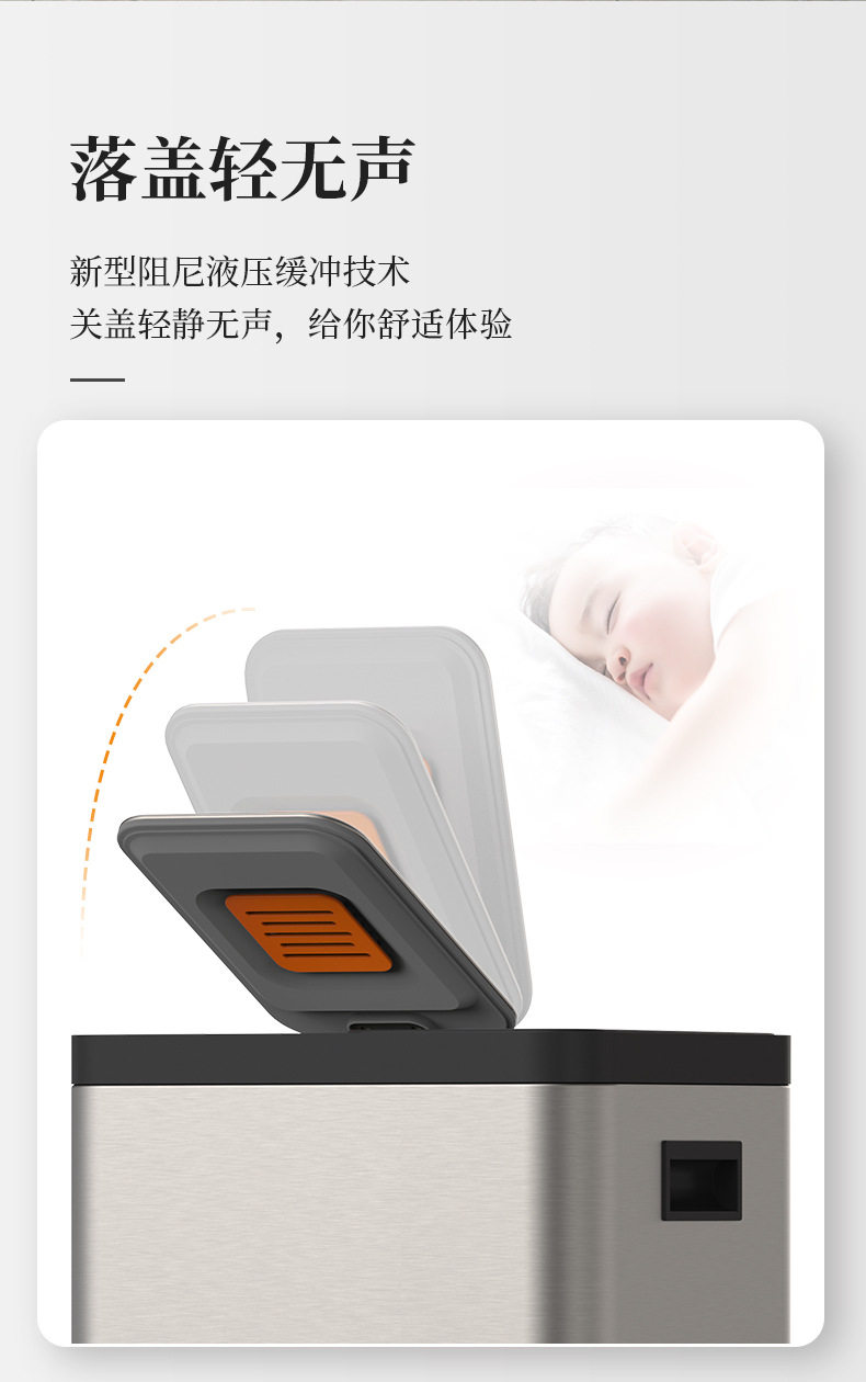 Java家華知能ゴミ箱足踏み静音緩降ステンレス蓋付き寝室トイレ客間家庭用卸売り