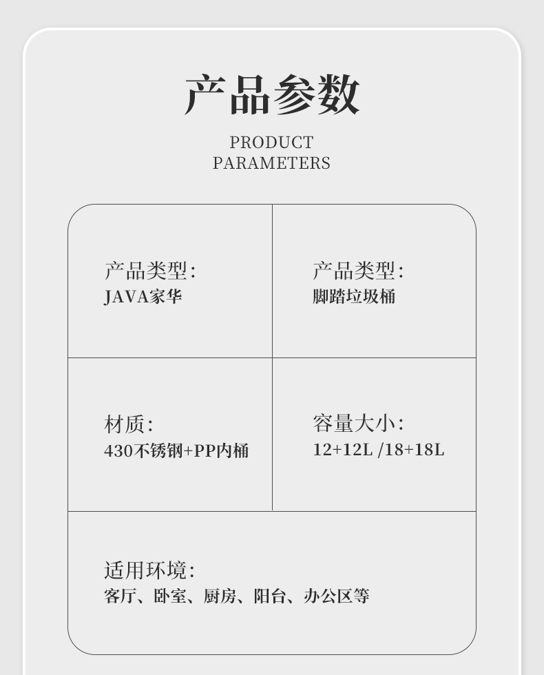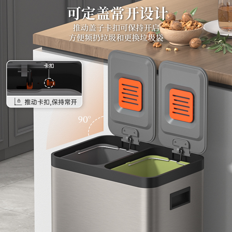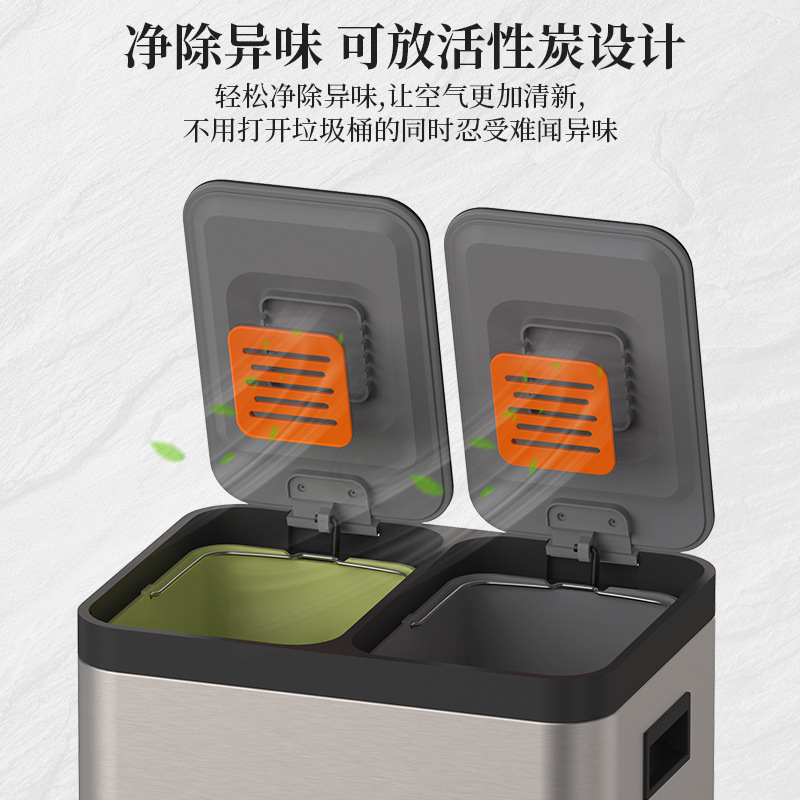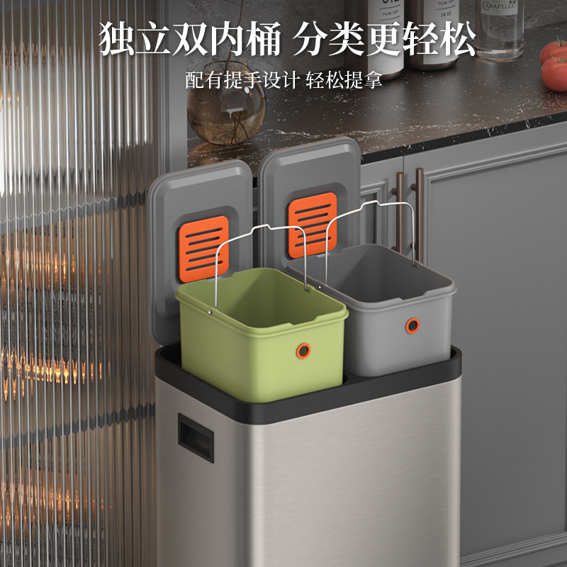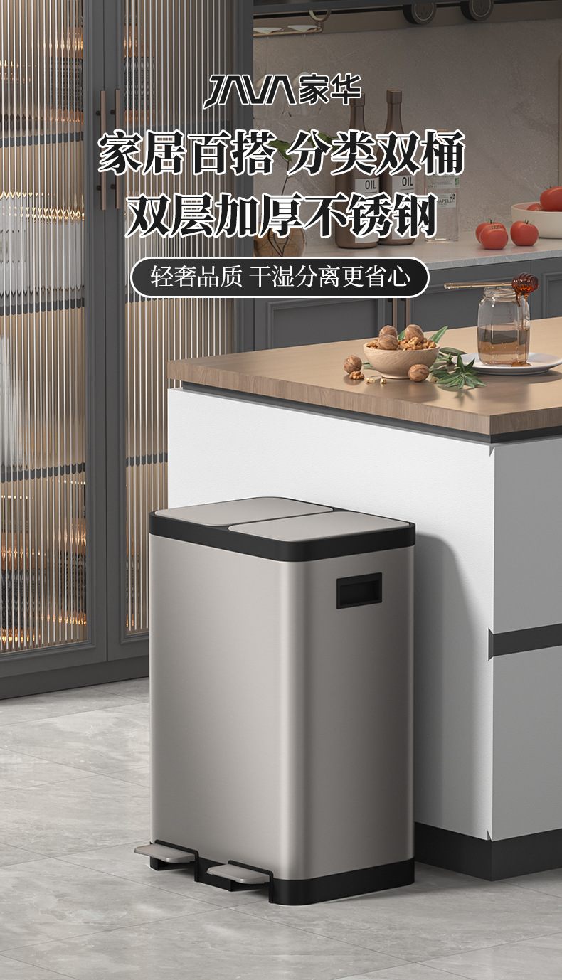 JAVA家華厨房分類ゴミ箱軽豪華ステンレス足蓋付き二桶トイレゴミ箱卸売り