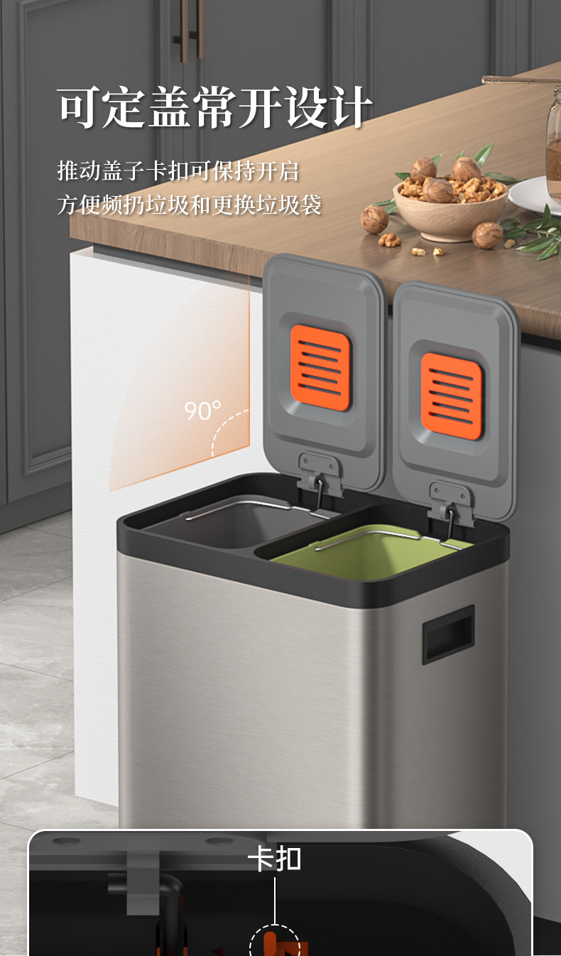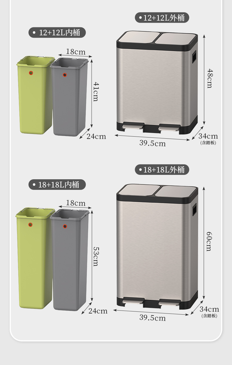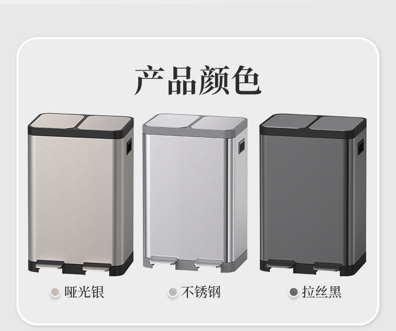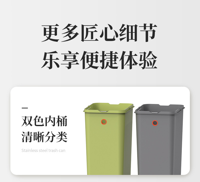 JAVA家華厨房分類ゴミ箱軽豪華ステンレス足蓋付き二桶トイレゴミ箱卸売り