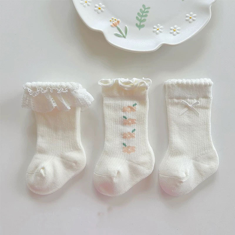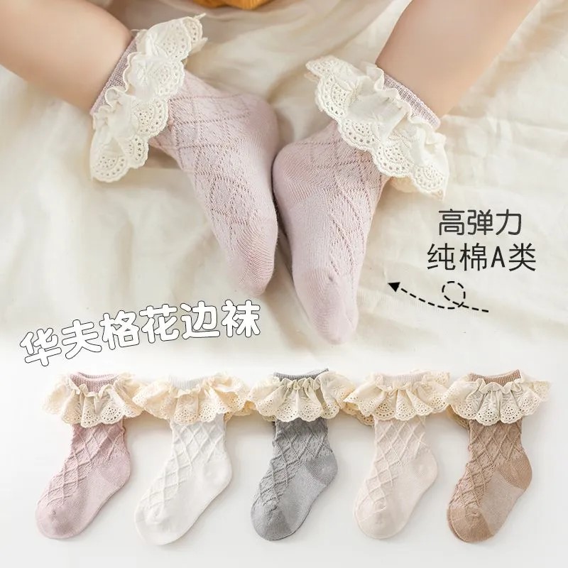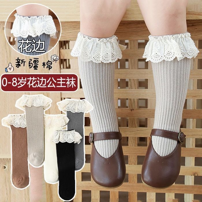 ベビーソックス卸売外国貿易クロスボーダー春秋ミッドチューブプリンセスソックス足を締め付けない新生児女の子レースソックス