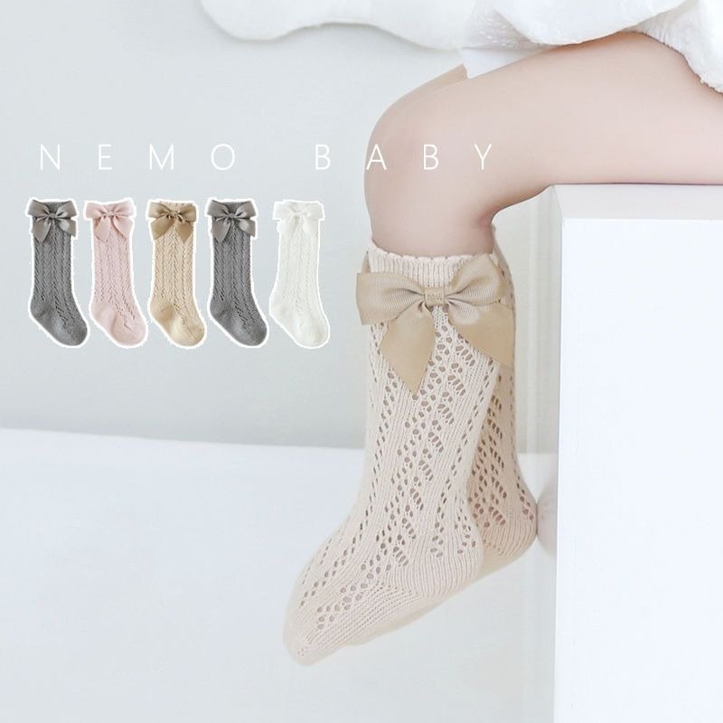 ベビーソックス卸売外国貿易クロスボーダー夏薄いメッシュハイチューブリボン新生児綿の靴下