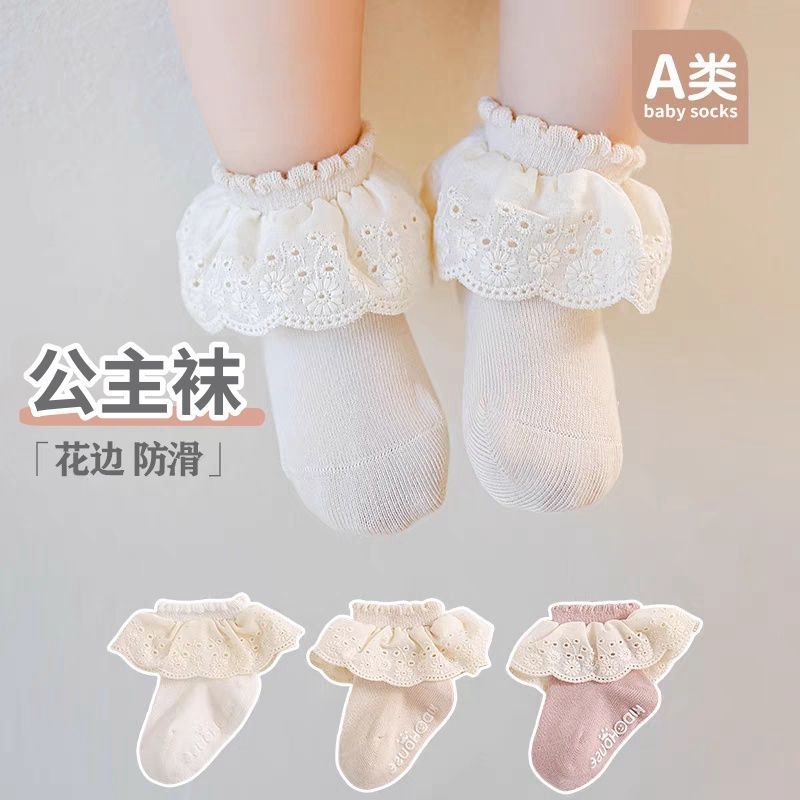 婴儿袜子春秋款花边袜防滑不勒腿新生儿女宝宝棉袜子