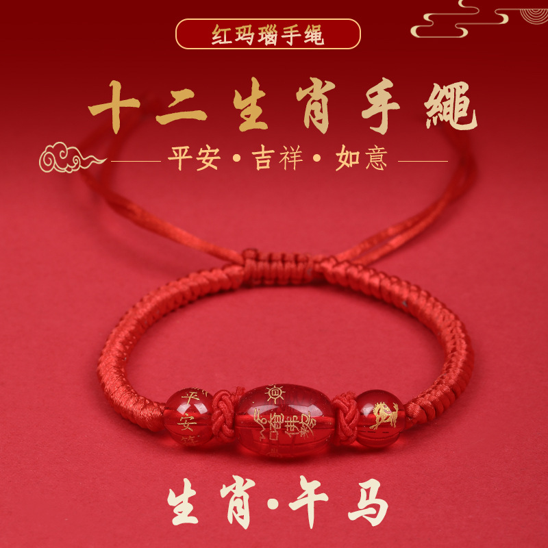 2026马年本命年化解红绳手链十二生肖虎猴猪龙编织玛瑙手绳男女礼