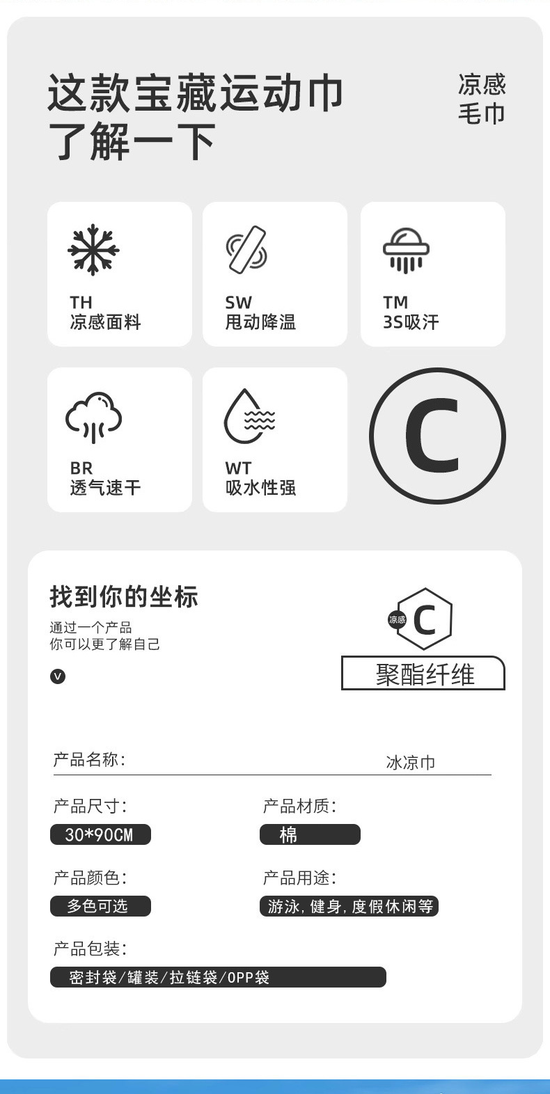 健身毛巾运动吸汗冰感降温湿巾清凉去汗冷感擦手健身房一次性毛巾