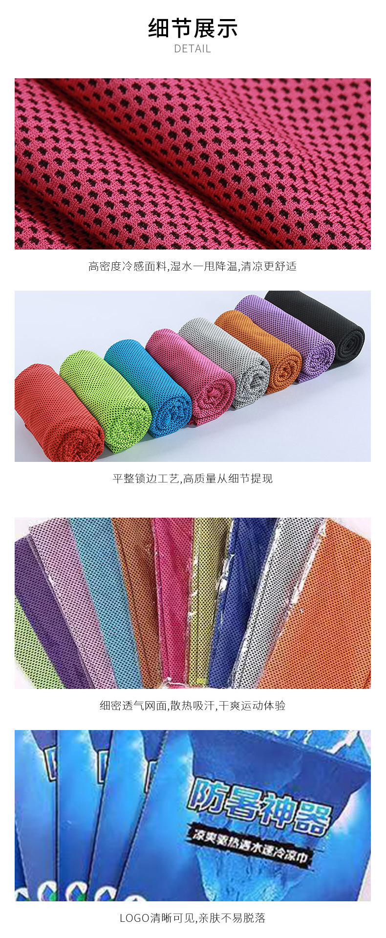 跨境冷感运动毛巾批发擦汗冰感毛巾速干冰凉巾便携式户外硅胶毛巾