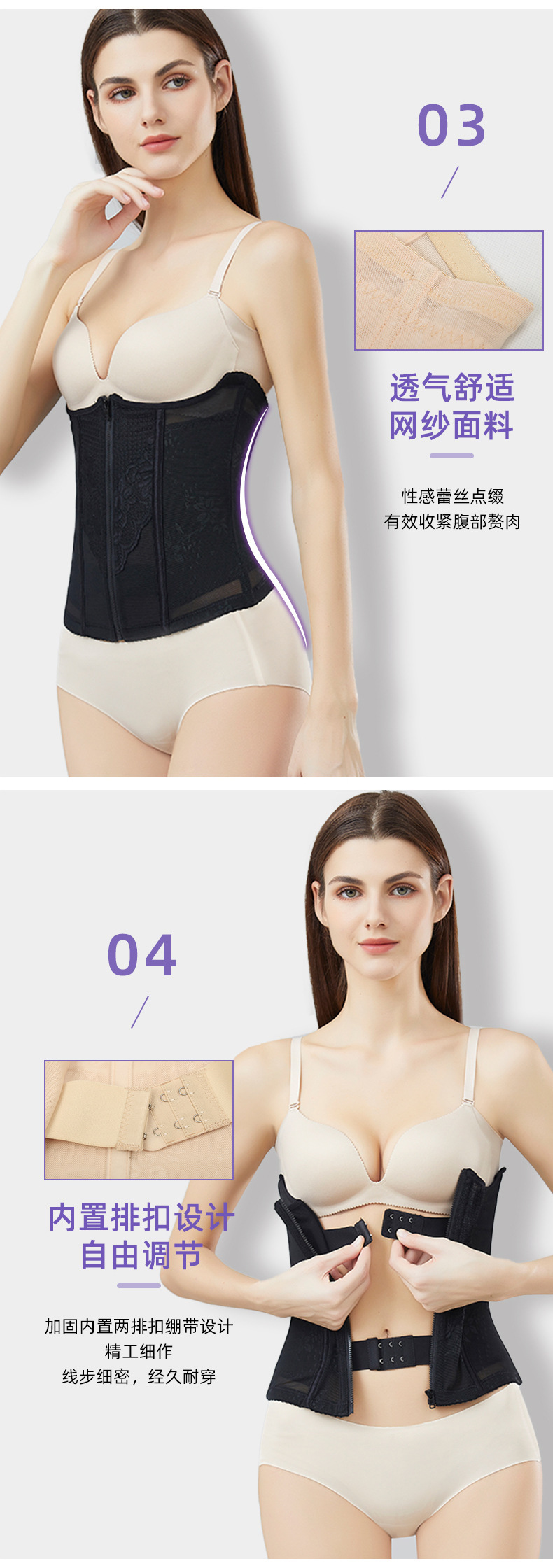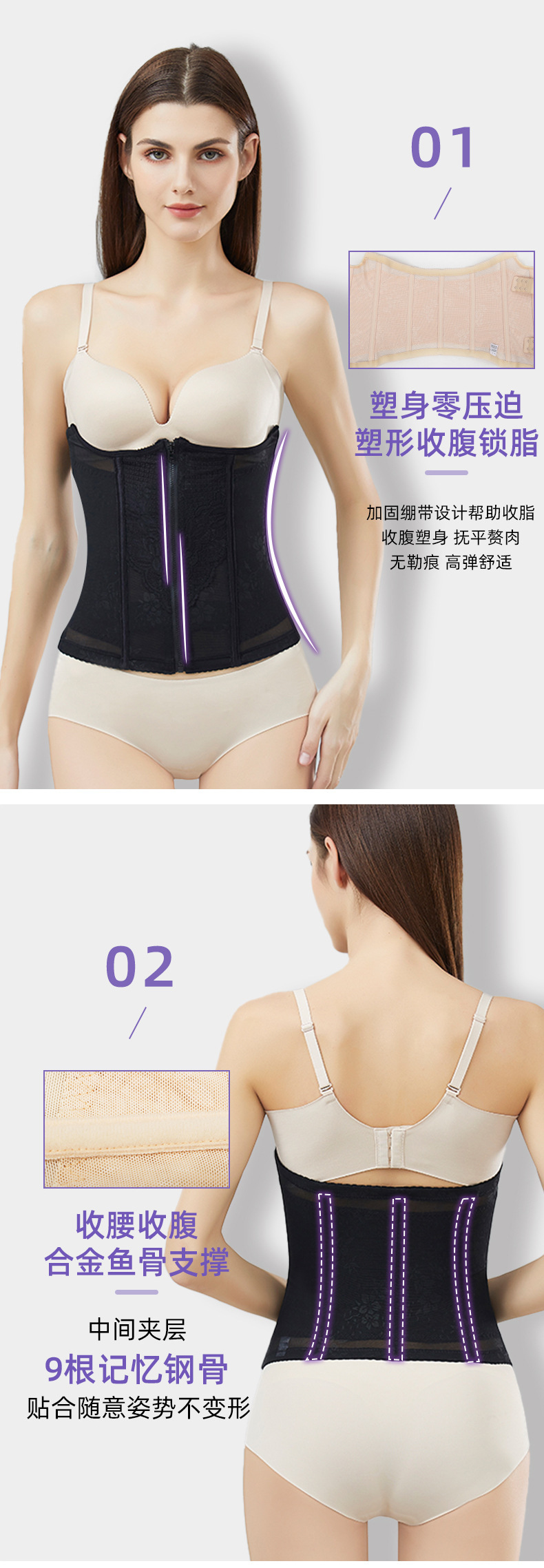 ベトナムのネットセレブ向け産後ガードル、女性用ウエストニッパー、体型補正、薄型ジッパー付きウエストシェイパー、人気商品