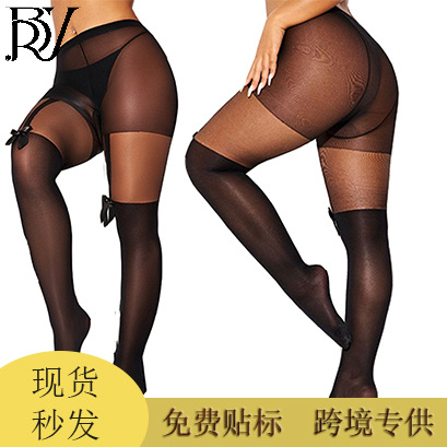 クロスボーダー大きいサイズのストッキング、偽サスペンダー、女性用オープンストッキング、夏用薄手ストッキング、引っ掛かり防止ストッキング、外でも着用可能