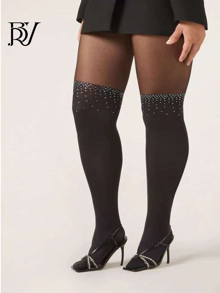 クロスボーダーストッキングスパークリングダイヤモンドホットダイヤモンドスキンストッキング女性の夏薄いストッキング黒シルク星空ダイヤモンド黒ストッキングヘビーマウス
