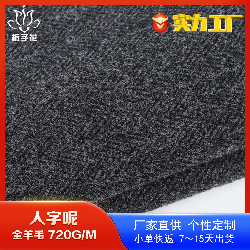 全羊毛深灰人字呢面料 秋冬外套大衣面料工厂供应人字纹毛呢面料