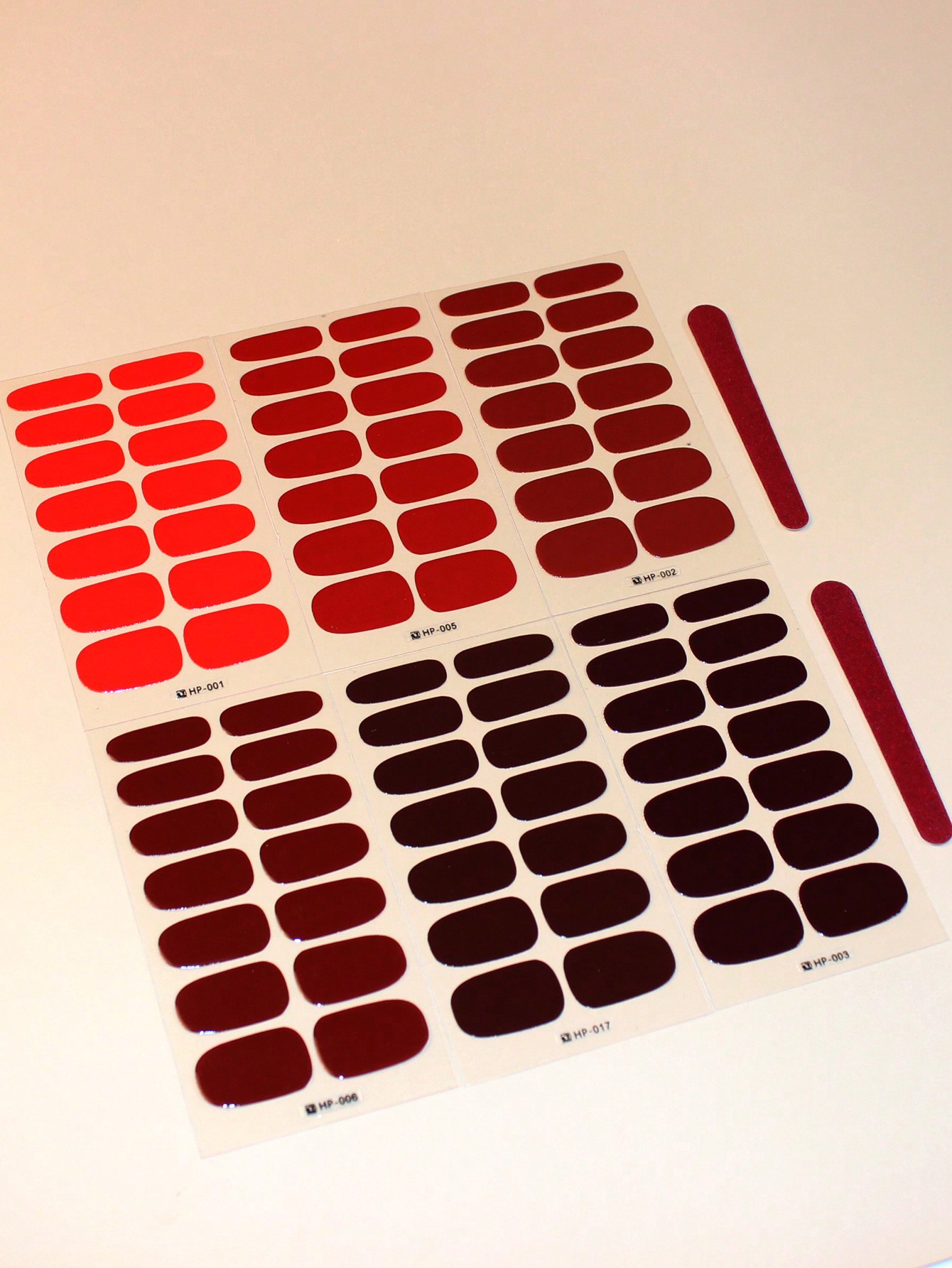 純色ネイルシール6枚のセットには、2つの爪やすりが含まれています。