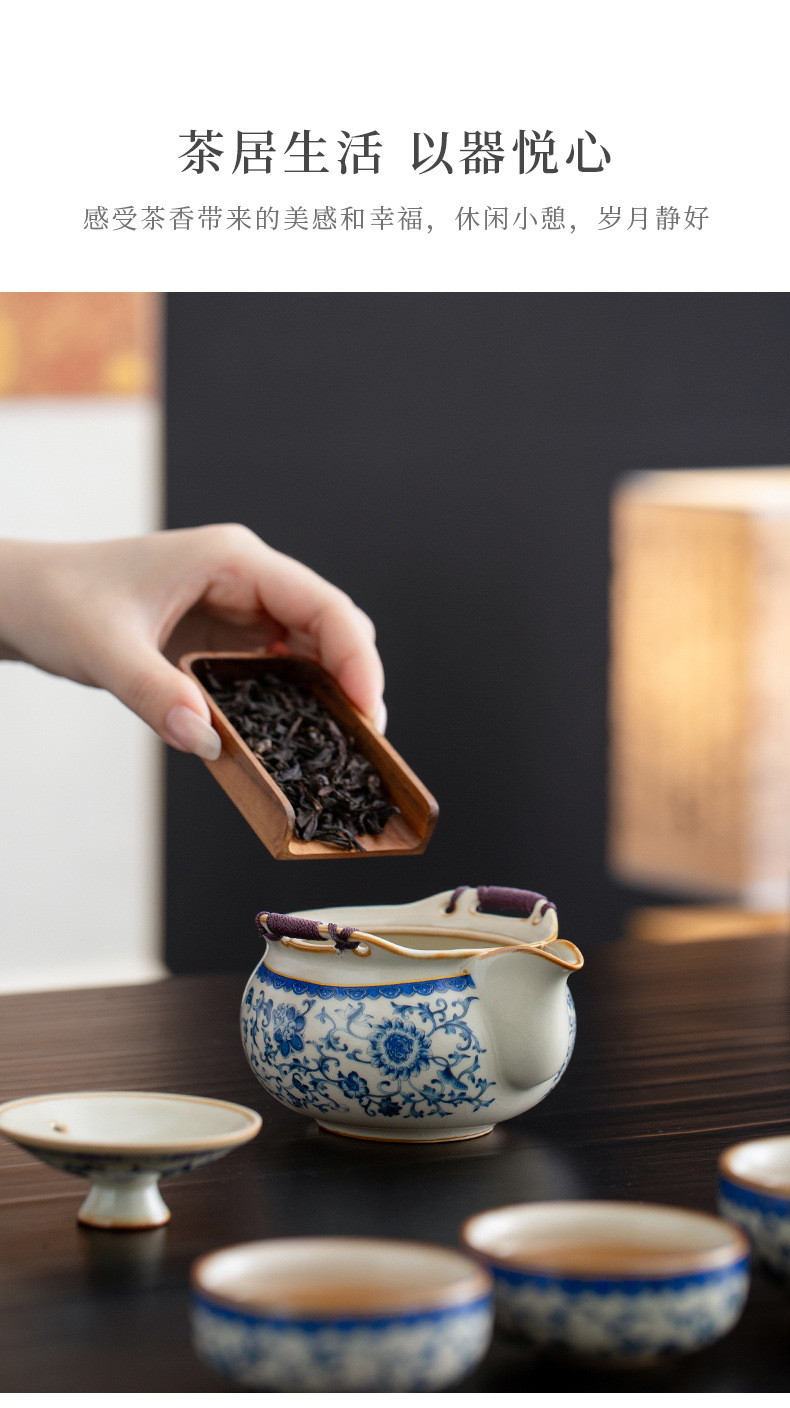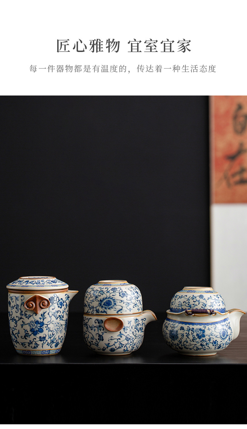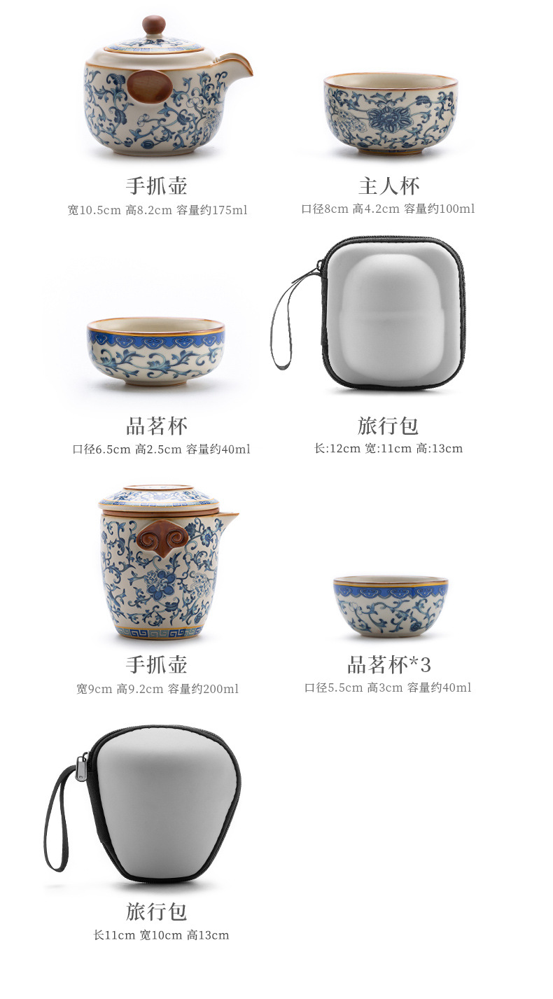 旅行茶器セット青花汝窯屋外キャンプ簡易金泡茶携帯型陶磁器快客一壺三杯